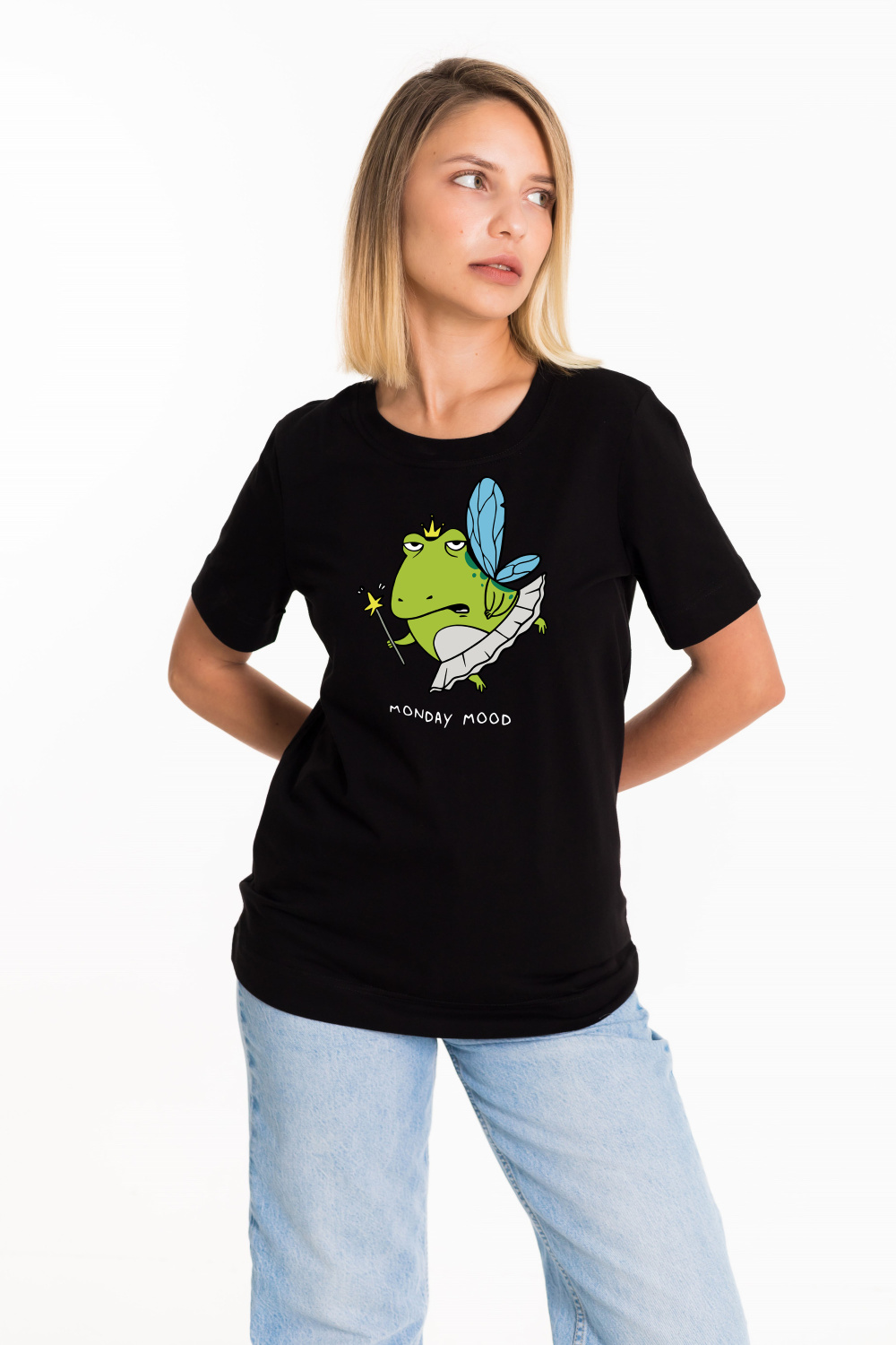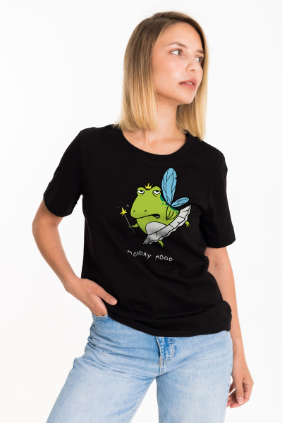 Женская футболка с принтом изготовлена из хлопкового полотна - что обеспечивает комфорт и хорошую воздухопроницаемость. Футболка имеет короткий рукав и круглый вырез горловины, что придает ей классический стильный вид. Такая модель футболки отлично сочетается с джинсами или брюками. Изготовленная из натуральной ткани, футболка обеспечит комфорт в течение всего дня.