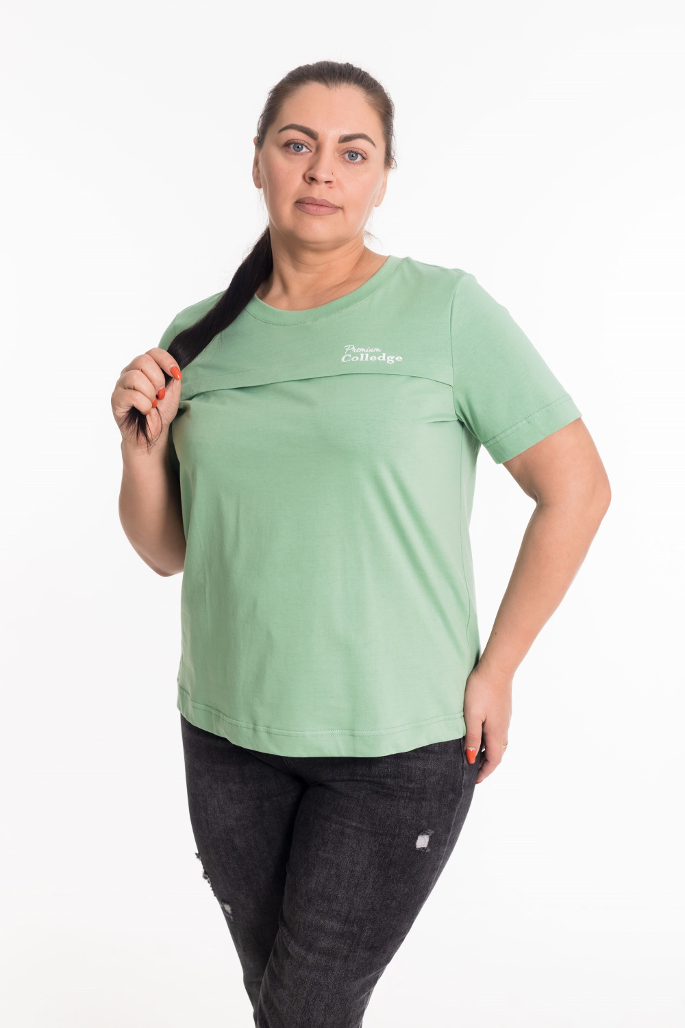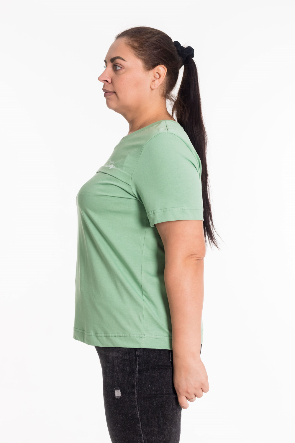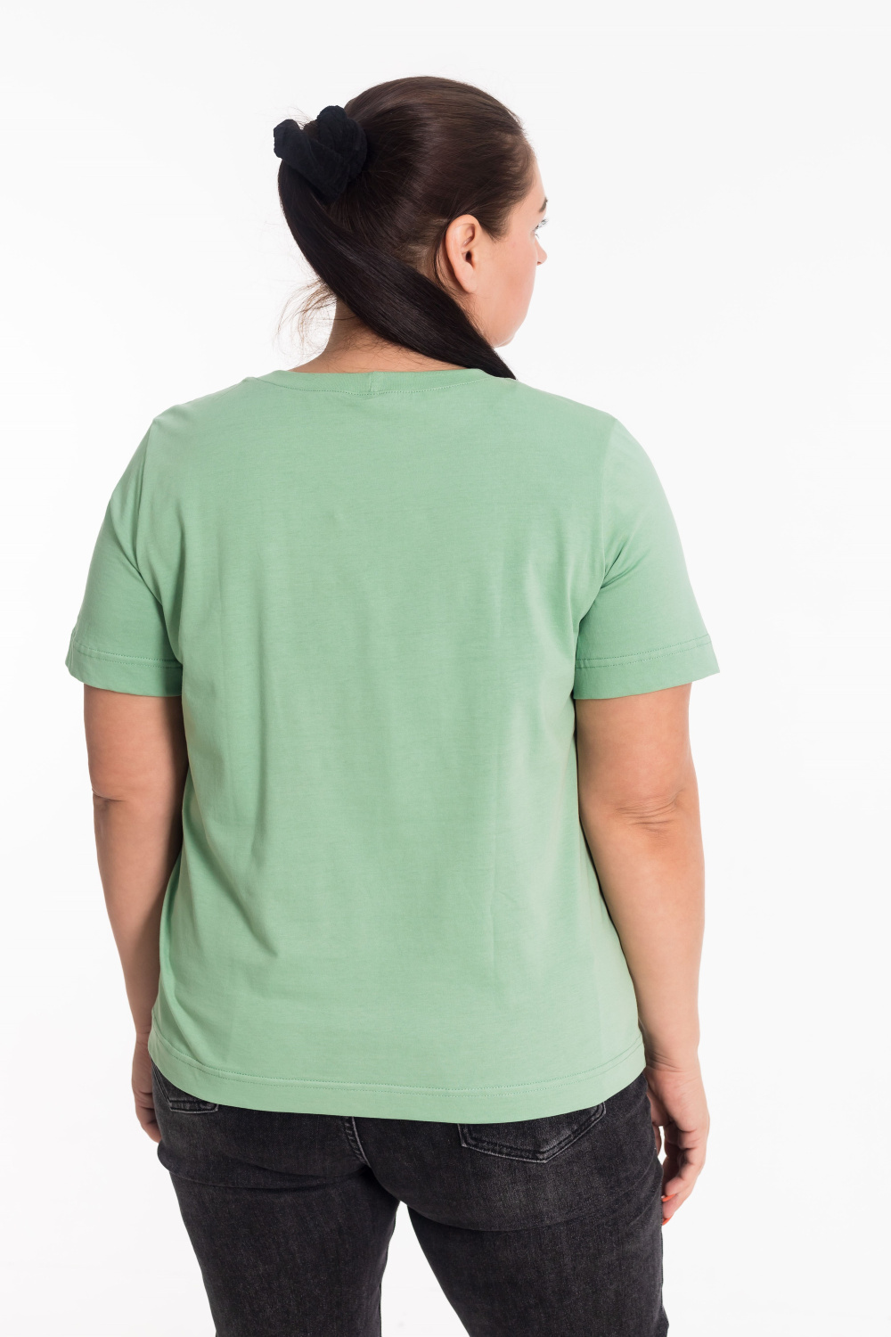 Женская футболка с принтом изготовлена из хлопкового полотна, что обеспечивает комфорт и хорошую воздухопроницаемость. Футболка имеет короткий рукав и круглый вырез горловины, что придает ей классический стильный вид. Такая модель футболки отлично сочетается с джинсами, брюками или юбкой. Изготовленная из натуральной ткани, футболка обеспечит комфорт в течение всего дня.
