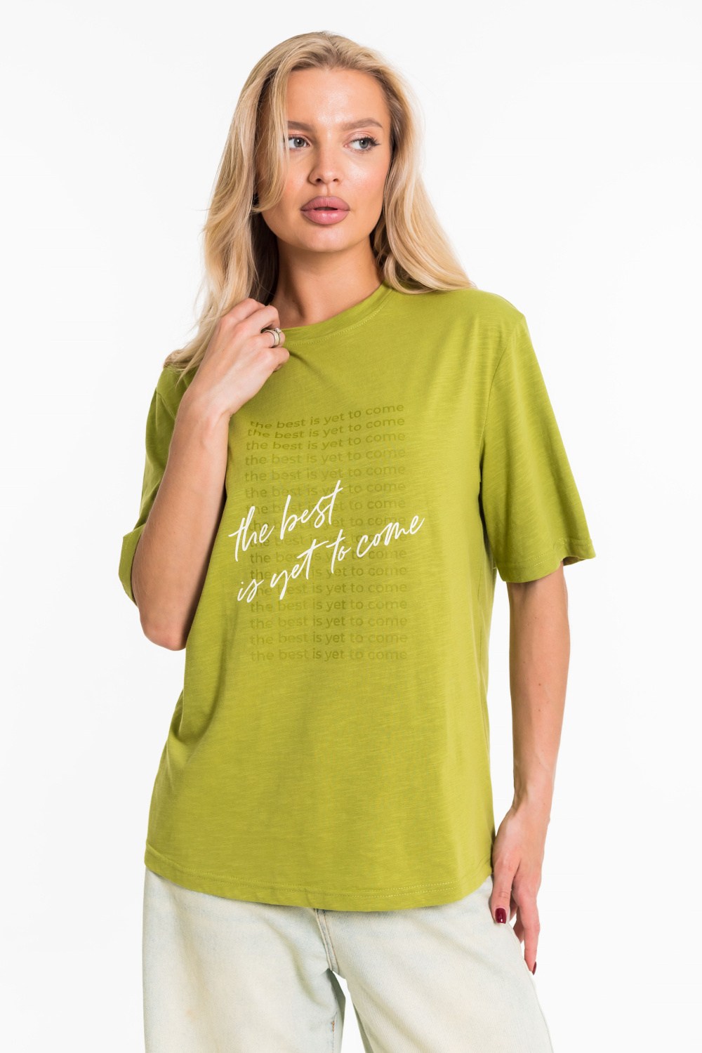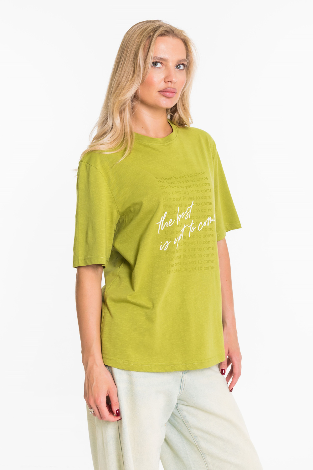 Женская футболка с принтом изготовлена из хлопкового полотна - кулирка "фламли", что обеспечивает комфорт и хорошую воздухопроницаемость. Футболка имеет короткий рукав и круглый вырез горловины, что придает ей классический стильный вид. Такая модель футболки отлично сочетается с джинсами, брюками или юбкой. Изготовленная из натуральной ткани, футболка обеспечит комфорт в течение всего дня.