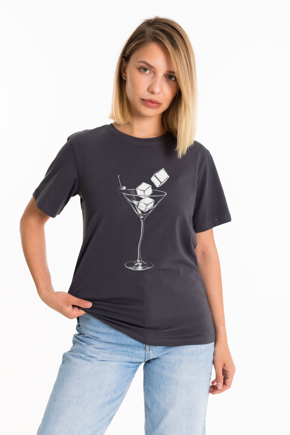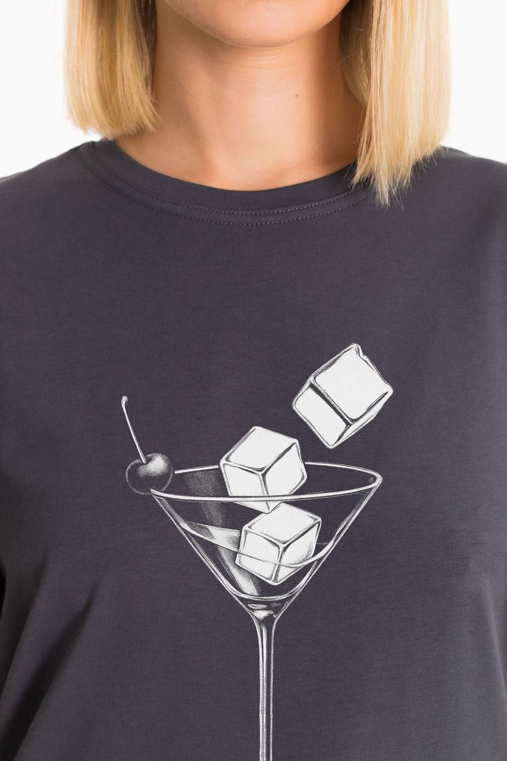 Женская футболка с принтом изготовлена из хлопкового полотна с добавлением лайкры - что обеспечивает комфорт и хорошую воздухопроницаемость. Футболка имеет короткий рукав и круглый вырез горловины, что придает ей классический стильный вид. Такая модель футболки отлично сочетается с джинсами или брюками. Изготовленная из натуральной ткани, футболка обеспечит комфорт в течение всего дня.