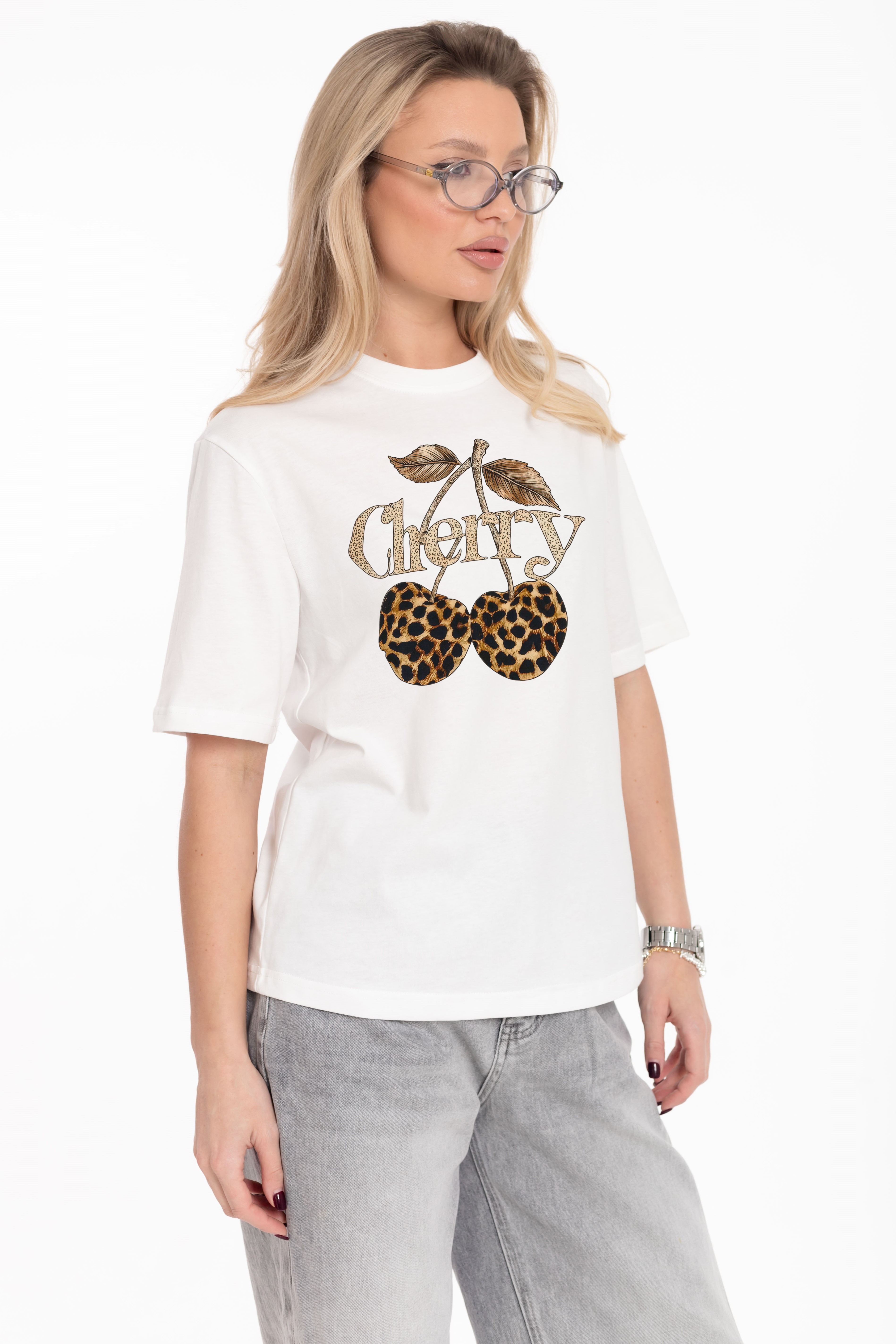 Футболка из однотонной кулирки, 100% хлопок. С коротким втачным рукавом и притачной планкой по горловине. Спереди нанесён принт.
