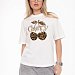 Футболка из однотонной кулирки, 100% хлопок. С коротким втачным рукавом и притачной планкой по горловине. Спереди нанесён принт.