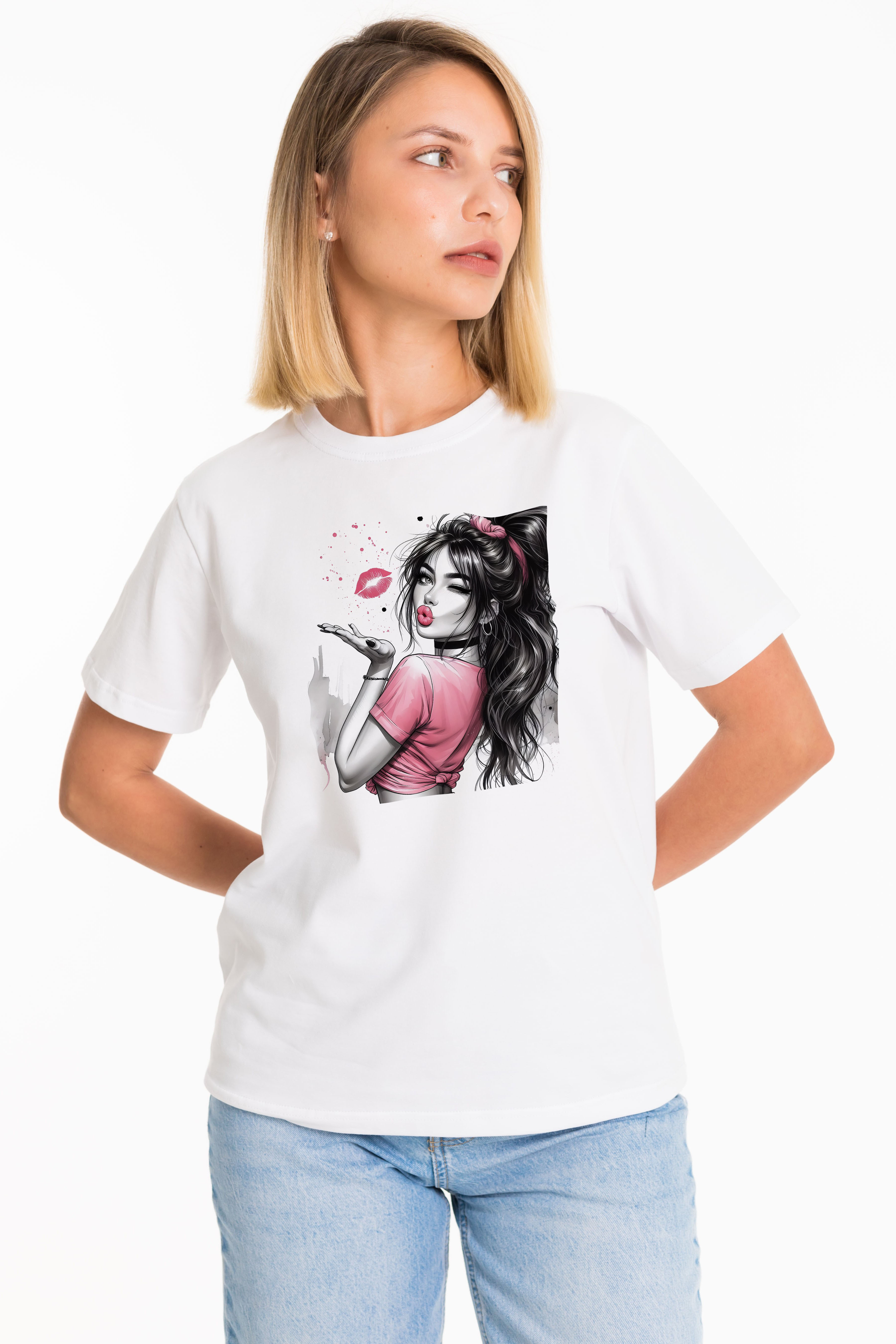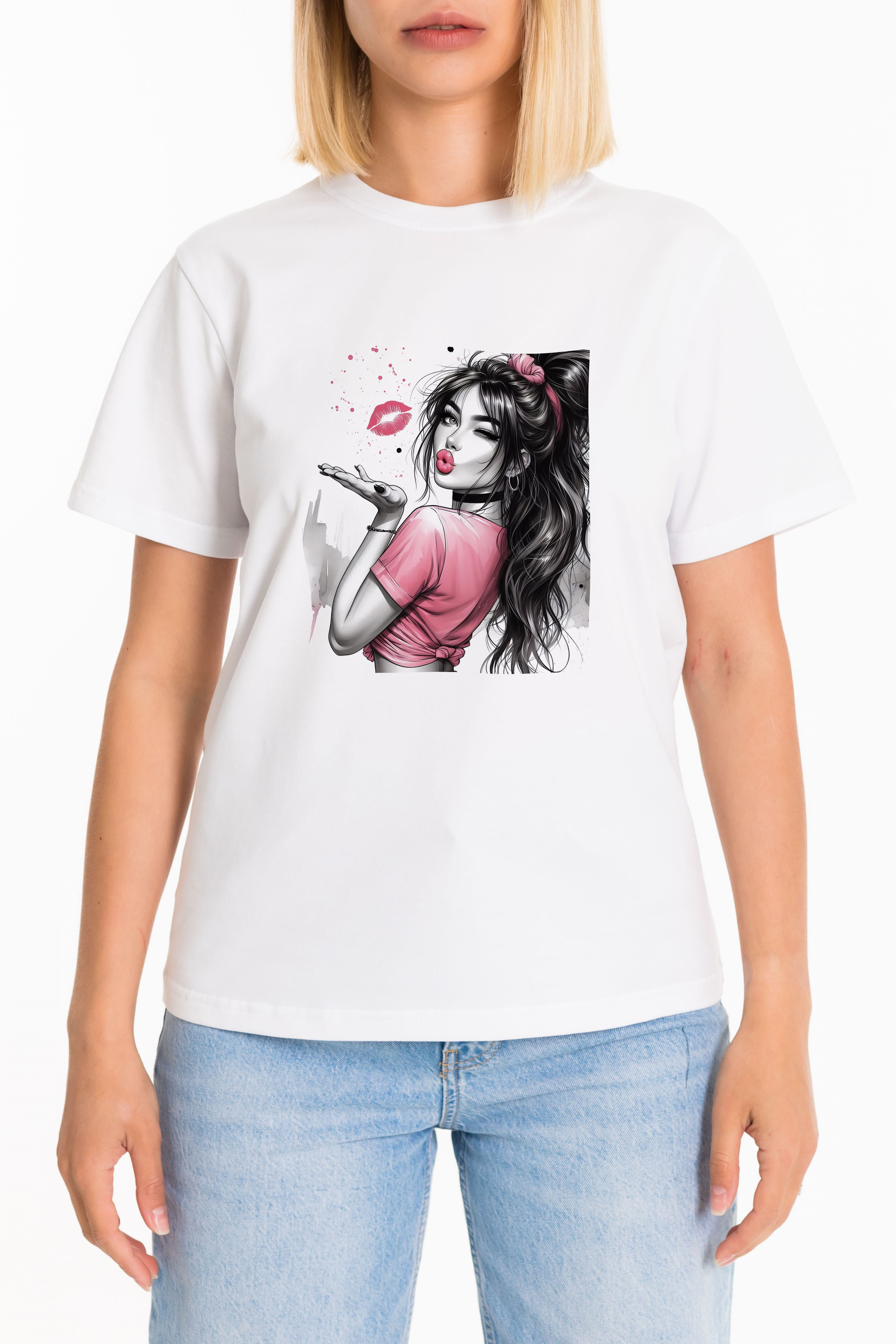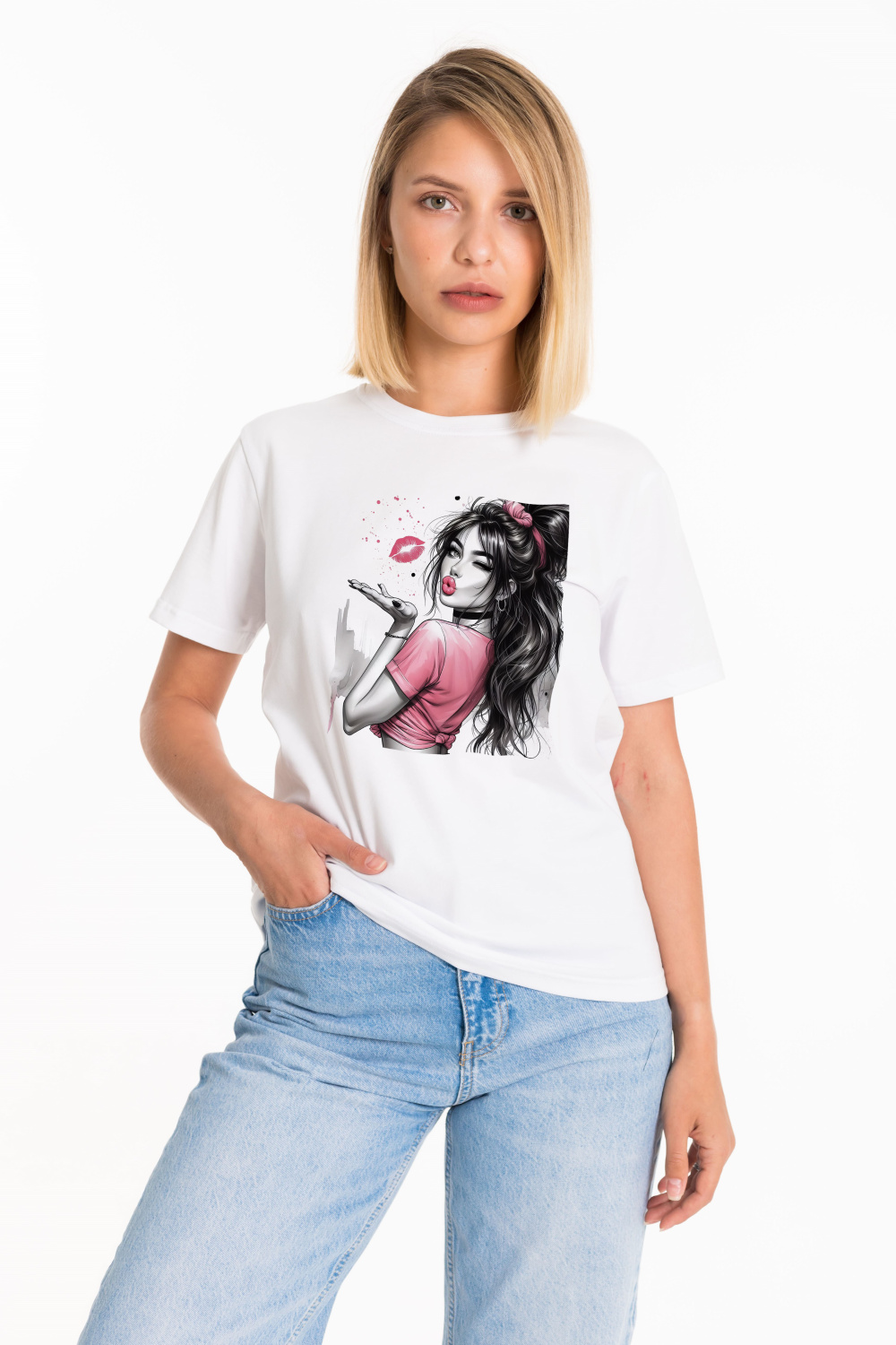 Женская футболка изготовлена из хлопкового полотна с добавлением лайкры, что обеспечивает комфорт и хорошую воздухопроницаемость. Футболка имеет короткий втачной рукав и круглый вырез горловины, что придает ей классический стильный вид. Такая модель базового белого цвета с оригинальным принтом отлично сочетается с джинсами, брюками или юбкой. Изготовленная из натуральной ткани, футболка обеспечит комфорт в течение всего дня.
