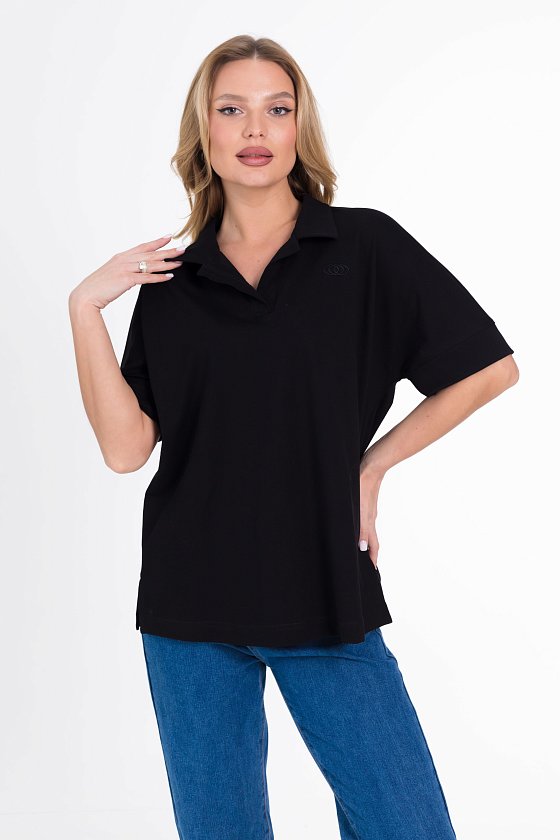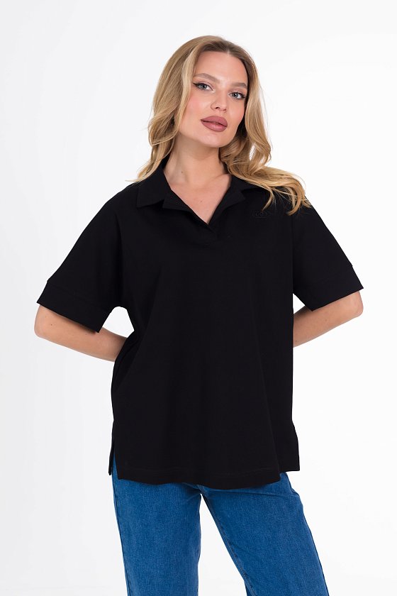 Футболка из полотна "пике". Свободного силуэта, по бокам внизу