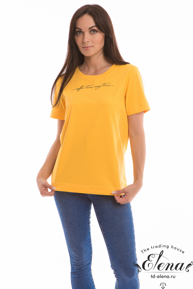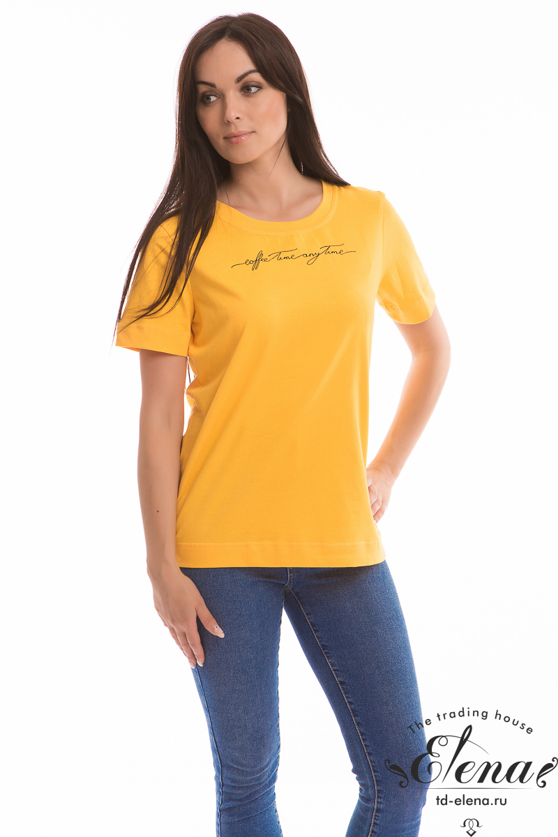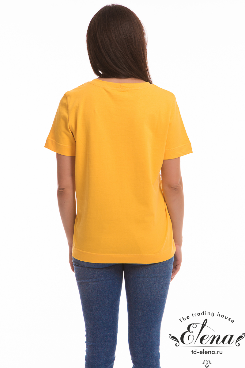 Футболка из кулирки, 100%хлопок, с коротким втачным рукавом и притачной планкой по горловине. Спереди вышивка.