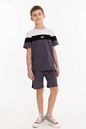 Халат из кулирки с набивным рисунком. С коротким рукавом, карманами по бокам и застежкой на молнию. Халат с закруглением по боковым швам, отделка контрастной бейкой.