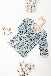 Халат с застёжкой на молнии выполнен из кулирки, 100% хлопок. Спереди и на рукавах вставки из отделочного полотна, по бокам расположены карманы.