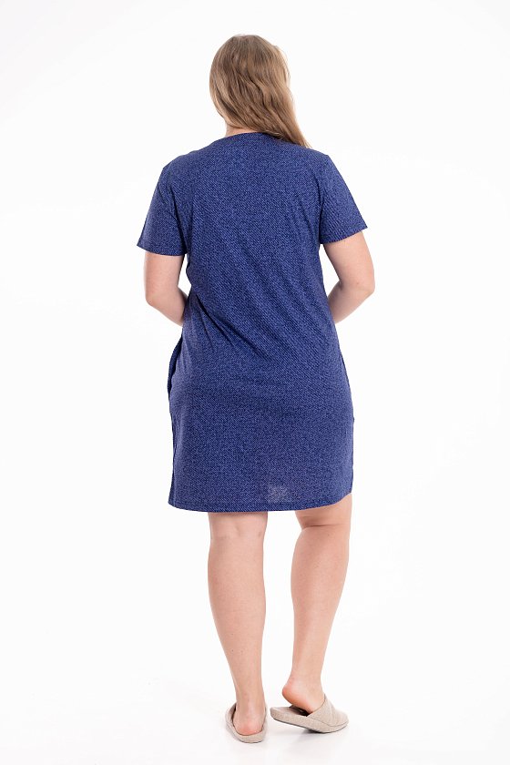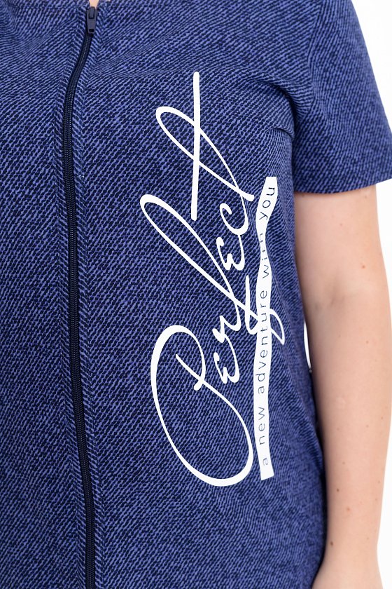 Женский халат выполнен из мягкой кулирки насыщенного синего цвета. Модель на молнии с коротким рукавом украшена контрастным белым принтом. В боковых швах расположены удобные карманы для мелочей. Практичный и функциональный халат для комфортного повседневного отдыха.