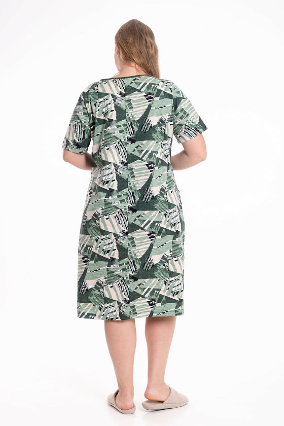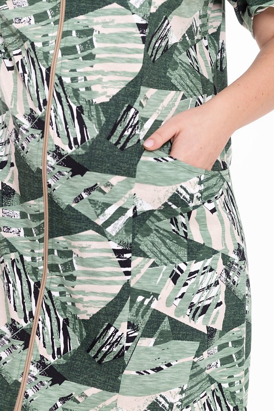 Женский халат из кулирки с набивным рисунком — практичный и удобный вариант для дома. Модель прямого кроя с короткими рукавами и круглым вырезом горловины подчёркивает женственность и обеспечивает свободу движений. Застёжка на молнии делает халат удобным в использовании, а накладные карманы добавляют функциональности. Контрастная бейка по горловине и бортам служит стильным акцентом. Натуральное хлопковое полотно приятно к телу и дарит комфорт в течение всего дня.