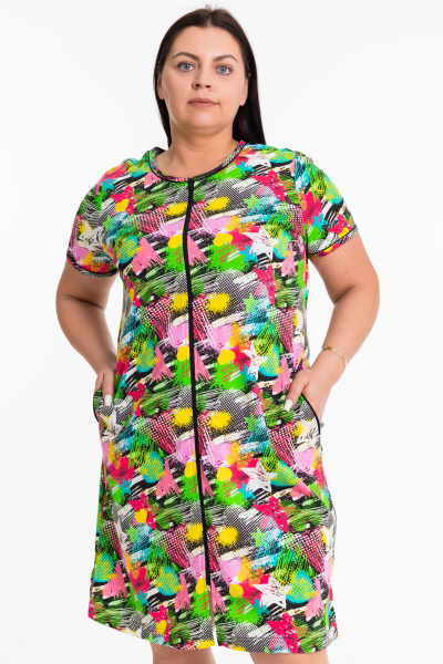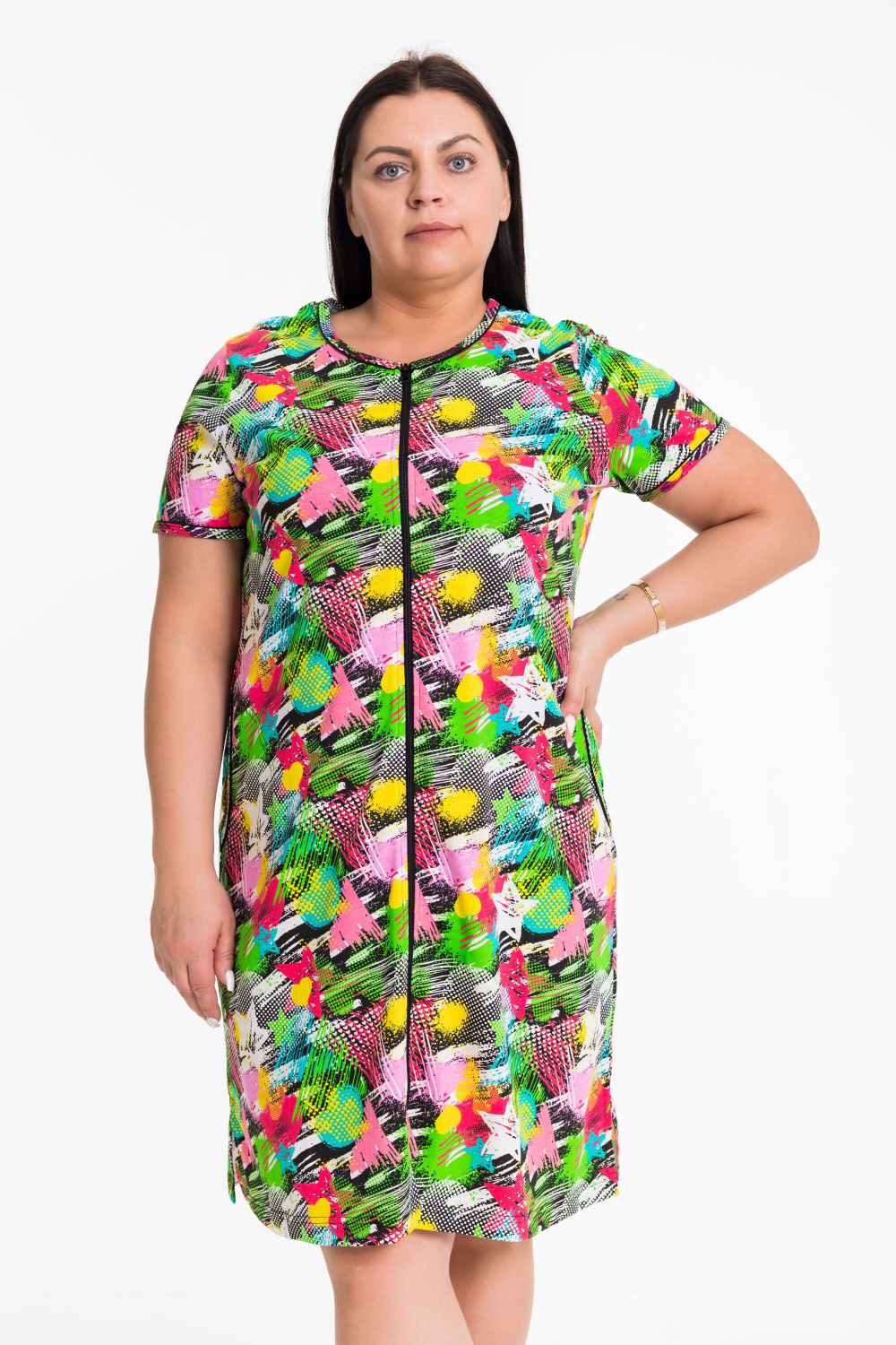 Женский халат — отличный выбор для домашнего отдыха. Халат изготовлен из мягкой и приятной к телу ткани — кулирки реактив с набивным рисунком. Центральная застёжка на молнию и боковые карманы делают эту модель функциональной, а разрезы по бокам обеспечивают свободу движений. Круглый вырез горловины, низ рукавов и вход в карманы обработаны бейкой из основного полотна с кантом белого цвета, что придает изделию оригинальность. Изготовленный из натуральной ткани, халат обеспечит комфорт в течение всего дня.