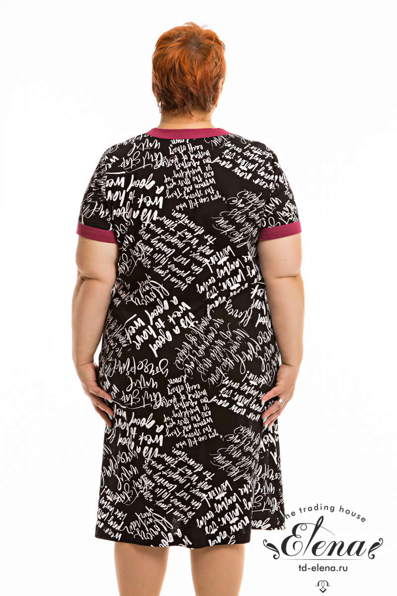 Халат выполнен из кулирки с набивным рисунком со вставками из однотонного отделочного полотна. Рукава короткие, втачные. Спереди расположены накладные карманы, центральная застёжка на молнию.