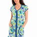 Халат женский укороченный, выполнен из набивной хлопковой ткани. Рукав цельнокроеный, горловина имеет V- образный вырез, центральная застёжка на молнию. Спереди расположены два накладных кармана. В качестве отделки бейка из однотонного полотна контрастного цвета.
