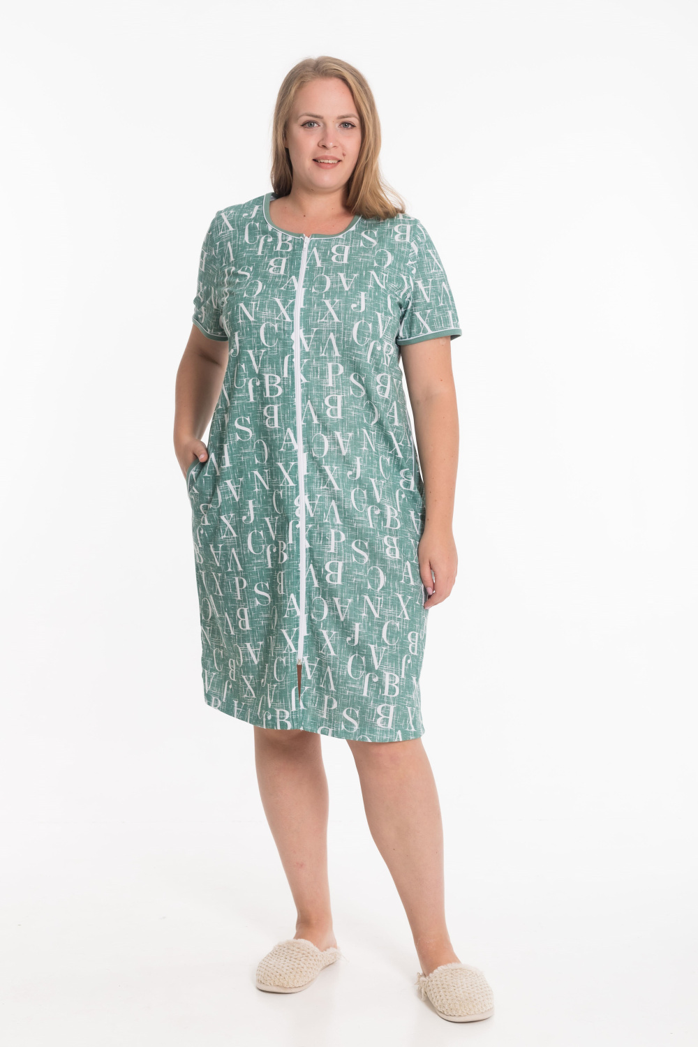 Женский халат из натурального хлопкового полотна — удобная и практичная модель для дома. Застёжка на молнии обеспечивает комфорт при использовании. Горловина, карманы и низ рукавов оформлены бейкой с кантом, что придаёт изделию аккуратный и элегантный вид. Халат мягкий, дышащий и приятный к телу — отличный выбор для повседневного комфорта.