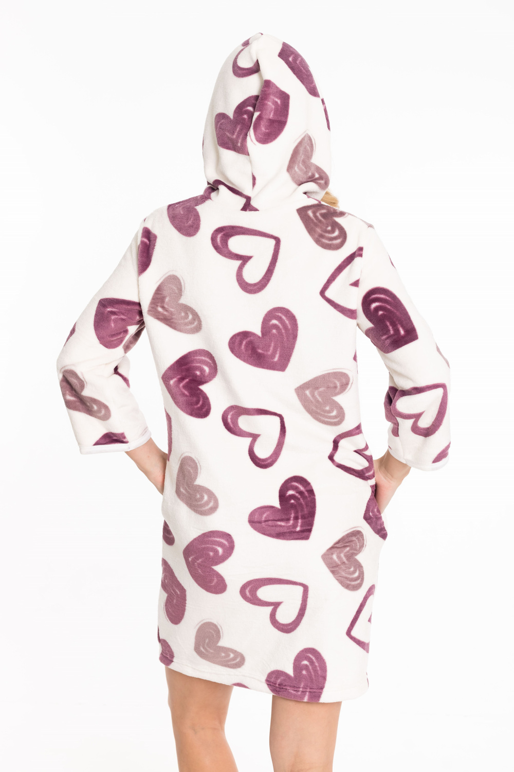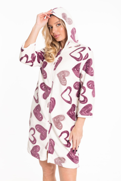 Женский халат из велсофта - очень мягкий и уютный. Прямой силуэт с молнией по центру и капюшоном делает халат одновременно удобным и стильным. Удобная длина рукава 3/4 обеспечит свободу движений, а карманы добавят практичности. Отделка швов бейкой из отделочного полотна придает халату завершенный вид и дополнительный стильный акцент. Велсофт известен своей мягкостью и приятной на ощупь текстурой, что делает этот халат идеальным для уютных моментов дома. Этот халат будет отличным выбором для расслабляющего и комфортного отдыха.
