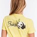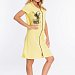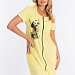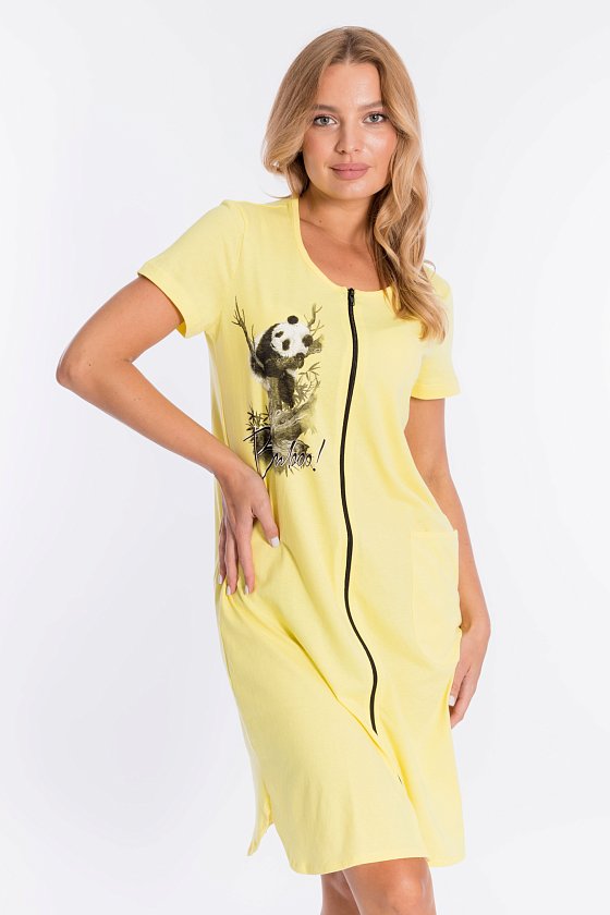Женский халат с застёжкой на молнию выполнен из однотонной кулирки. По бокам размещены карманы, спереди и на спинке нанесены принты.