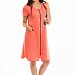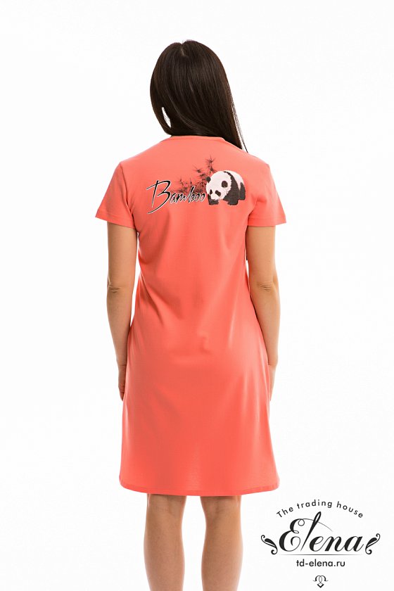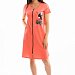 Женский халат с застёжкой на молнию выполнен из однотонной кулирки. По бокам размещены карманы, спереди и на спинке нанесены принты.