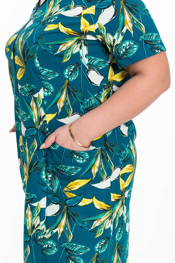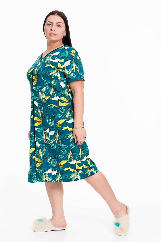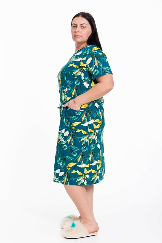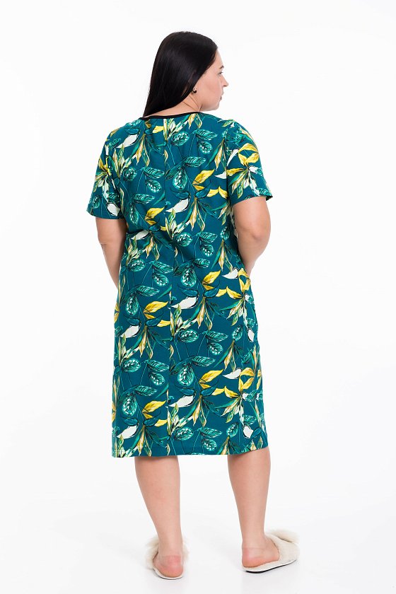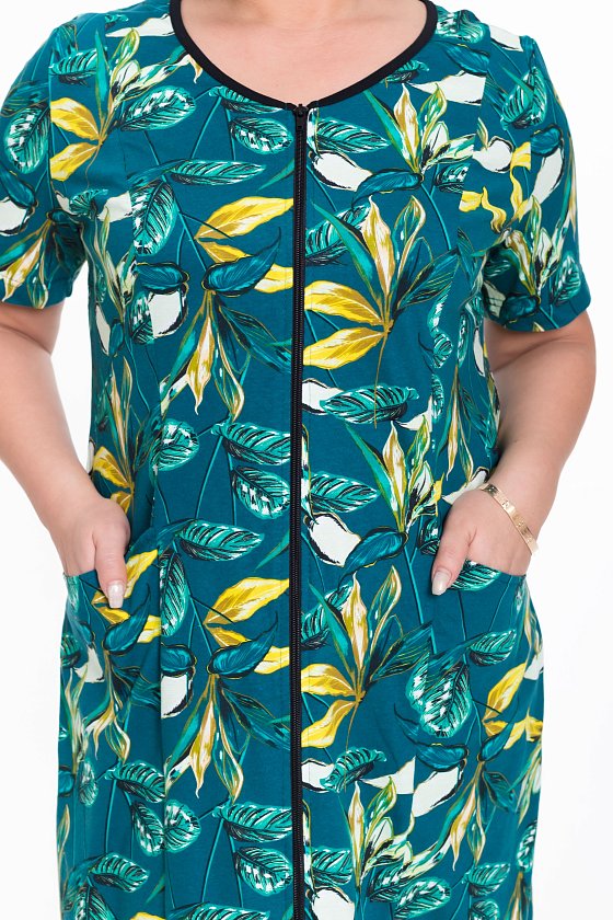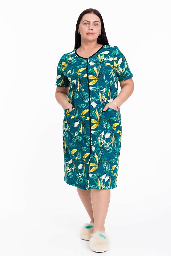 Женский халат из кулирки в изумрудном цвете с набивным рисунком - отличный выбор для повседневной носки дома.