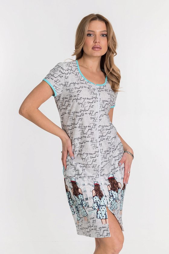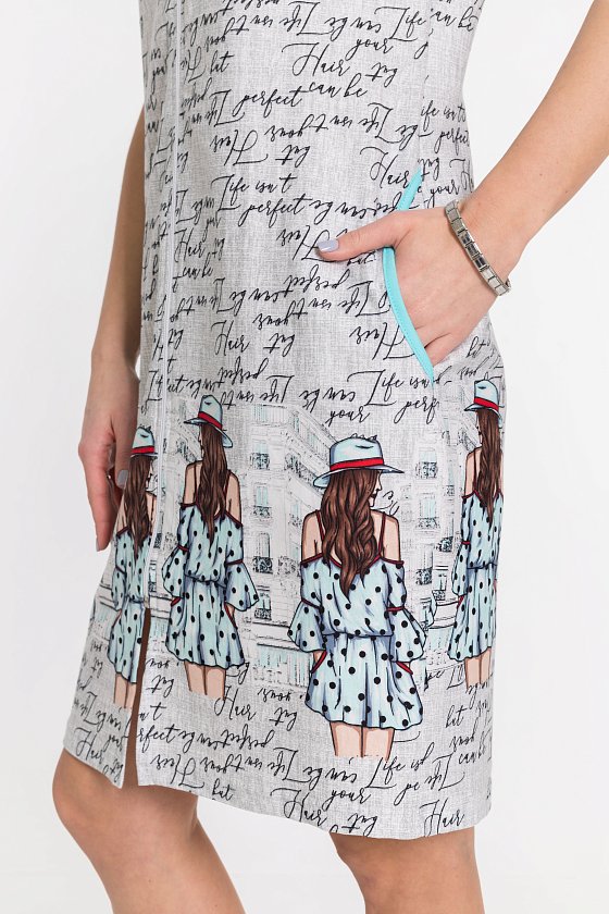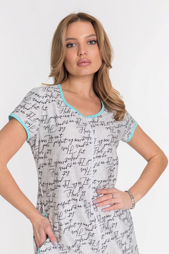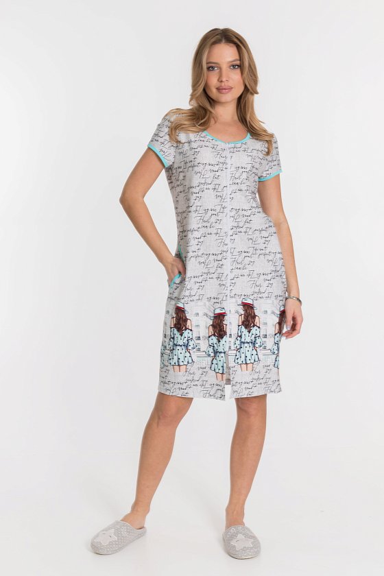 Халат из кулирки, застежка на молнию, короткий рукав, карманы от бокового шва.