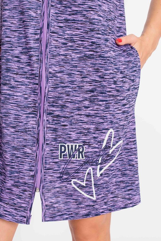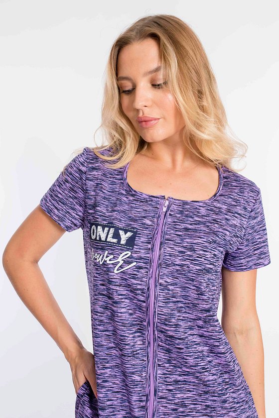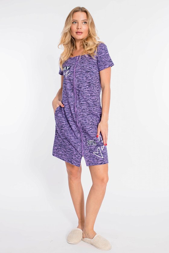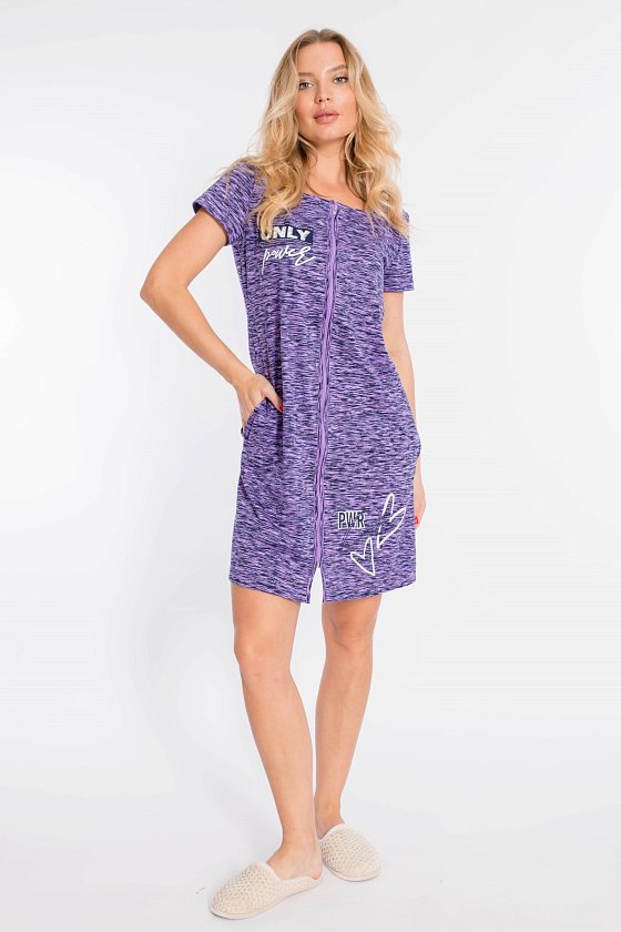 Женский халат на молнии с коротким рукавом выполнен из кулирки реактив. Принт спереди добавляет интересный акцент халату. Наличие карманов в боковых швах обеспечивает удобство для хранения мелких предметов.
