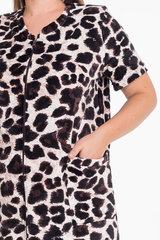 Женский халат из мягкого велюрового полотна — сочетание уюта, стиля и практичности. Модель с коротким рукавом и застёжкой на молнию обеспечивает комфорт и удобство в повседневной носке. По бокам расположены удобные накладные карманы. Велюровая ткань приятно прилегает к телу, дарит ощущение тепла и комфорта, сохраняя опрятный внешний вид даже после множества стирок. Идеальный выбор для дома и отдыха.