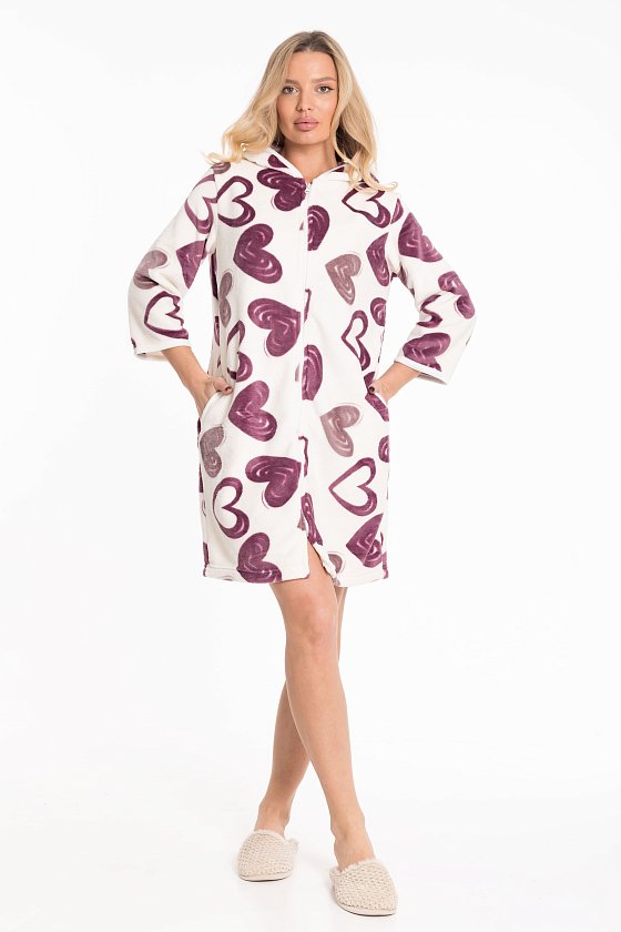 Женский халат из велсофта - очень мягкий и уютный. Прямой силуэт с молнией по центру и капюшоном делает халат одновременно удобным и стильным. Удобная длина рукава 3/4 обеспечит свободу движений, а карманы добавят практичности. Отделка швов бейкой из отделочного полотна придает халату завершенный вид и дополнительный стильный акцент. Велсофт известен своей мягкостью и приятной на ощупь текстурой, что делает этот халат идеальным для уютных моментов дома. Этот халат будет отличным выбором для расслабляющего и комфортного отдыха.