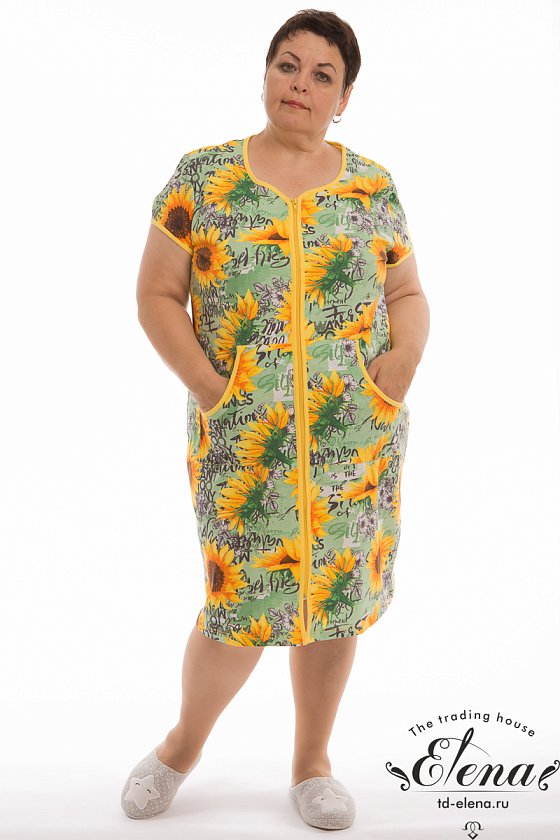 Женский халат — отличный выбор для домашнего отдыха. Он изготовлен из мягкой и приятной к телу ткани — кулирки реактив с набивным рисунком.