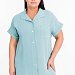 Женский халат на пуговицах выполнен из муслина. Халат свободного силуэта, короткий, со спущенной линией плеча, рукава оформлены притачной планкой, которая отворачивается налицо. С левой стороны настрочен карман, внизу по бокам декоративные разрезы.
