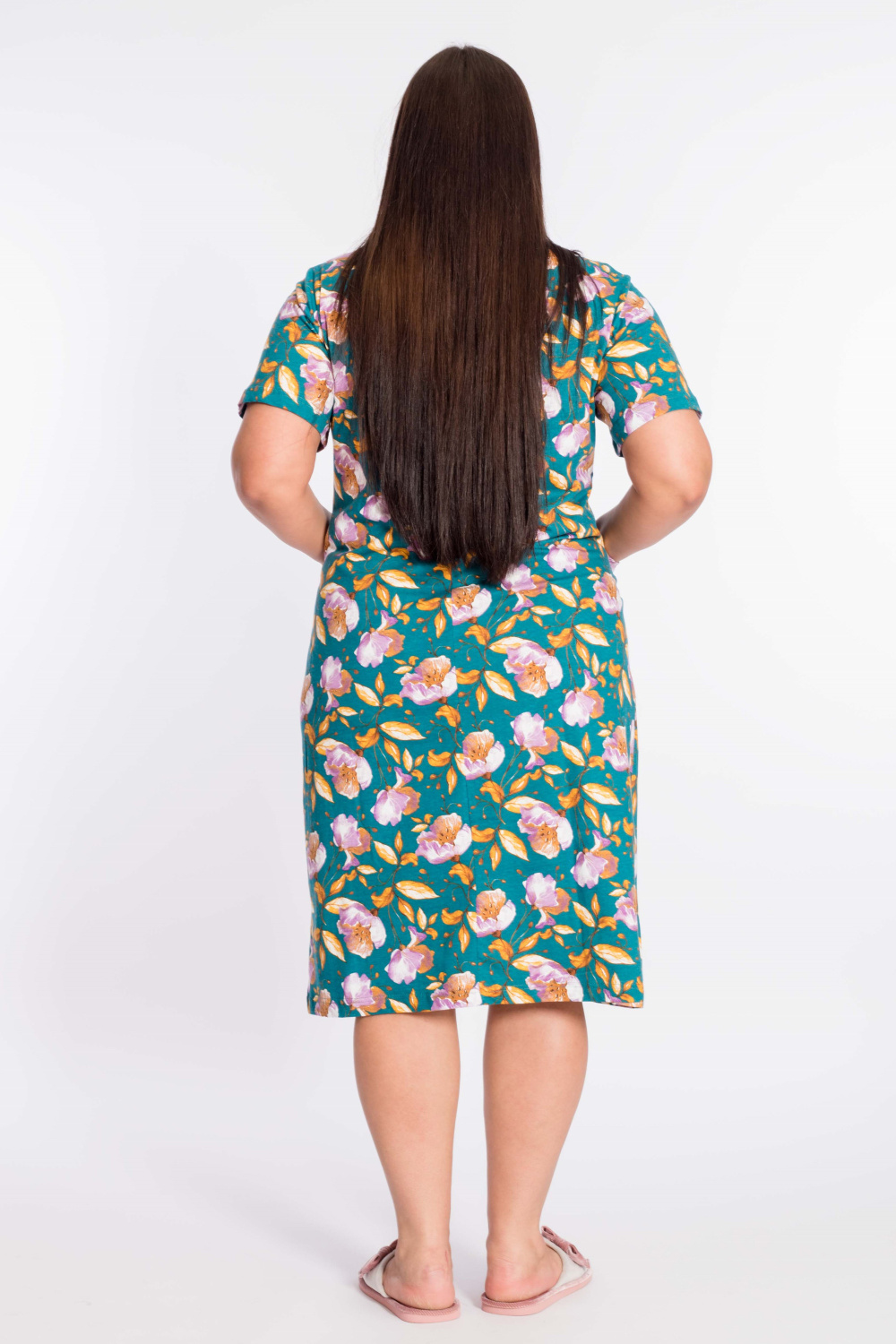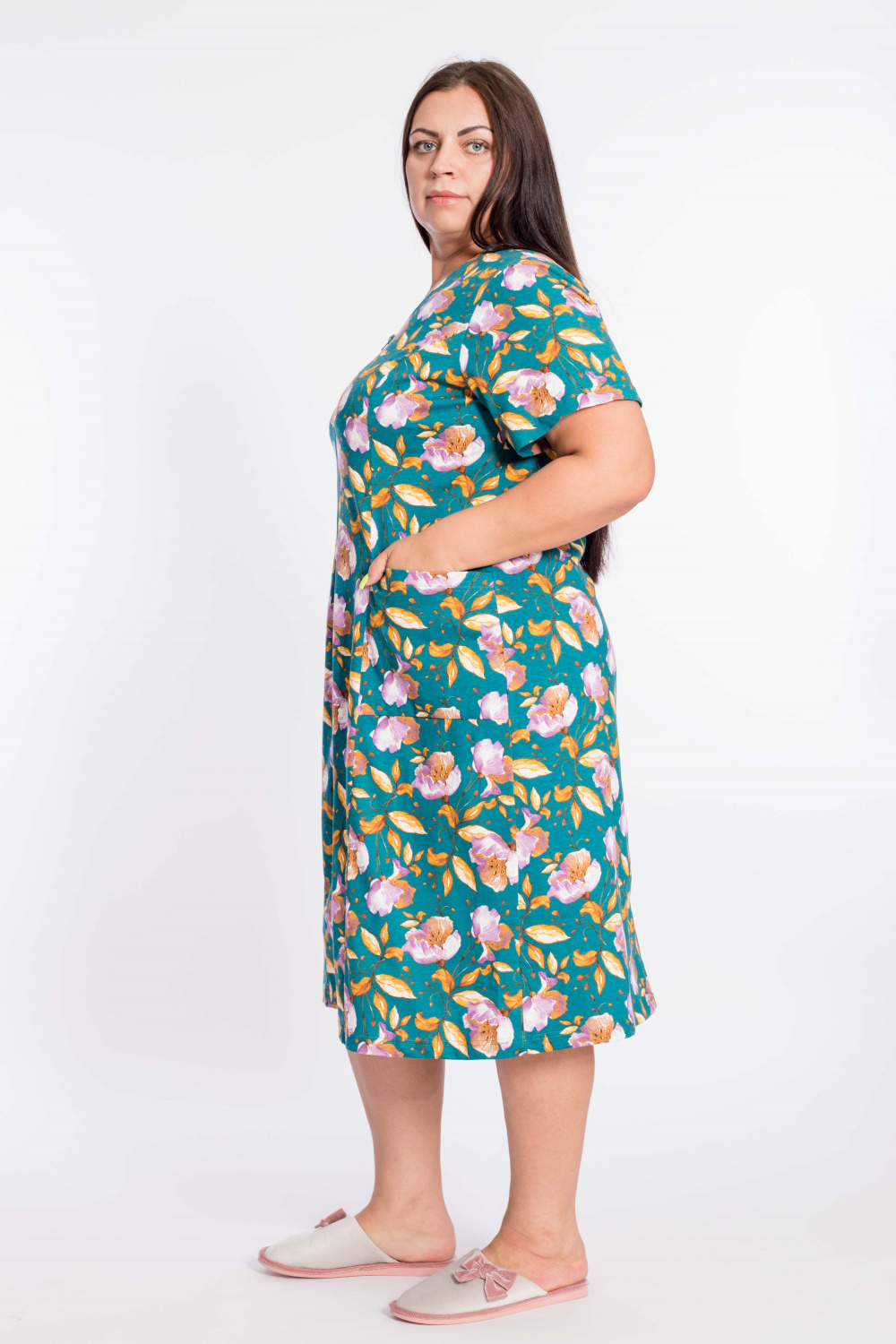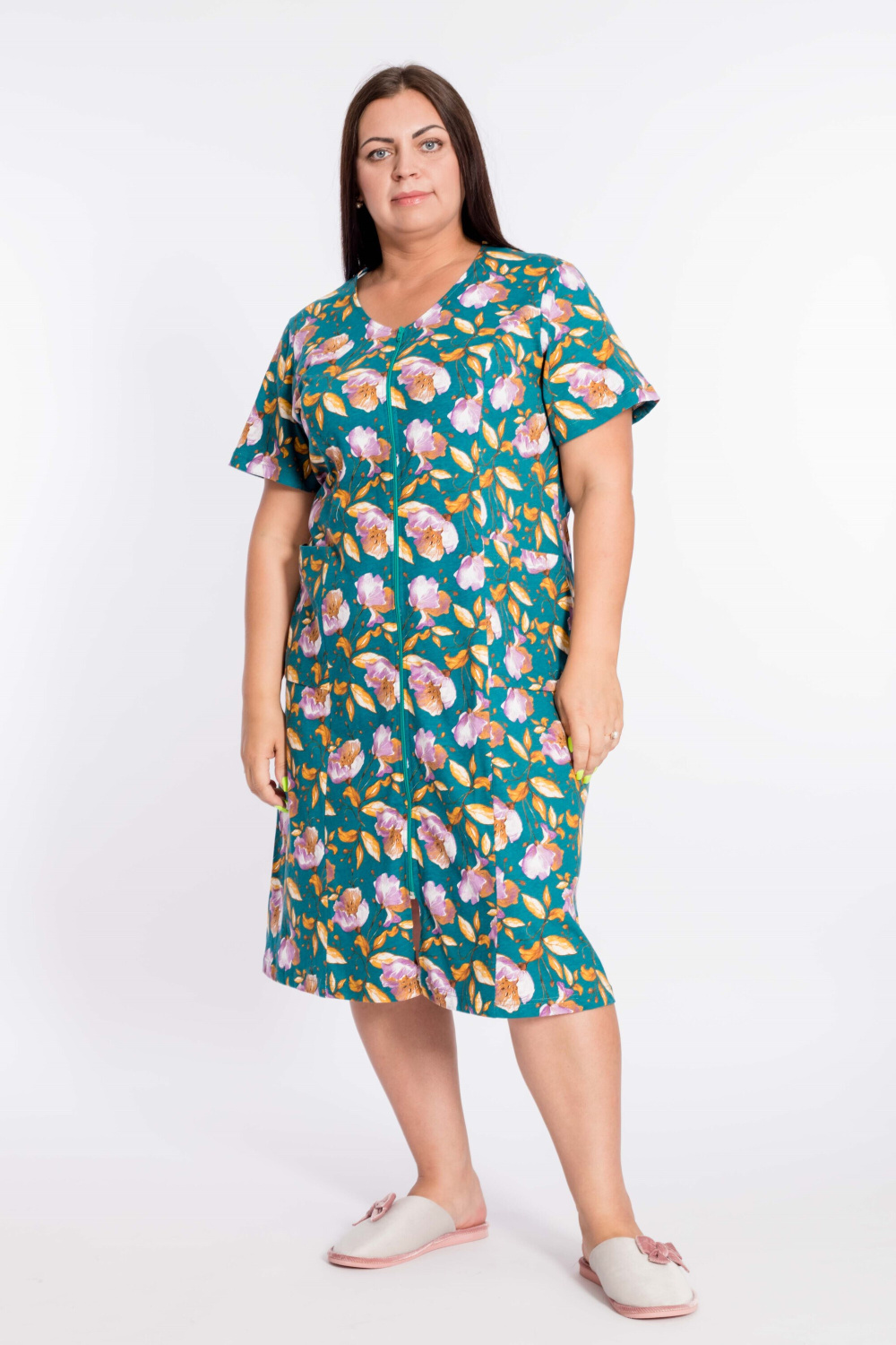 Халат выполнен из хлопкового полотна различных расцветок. Центральная застёжка на молнию, короткий рукав. По бокам расположены карманы.