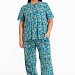 Костюм выполнен из х/б полотна с набивным рисунком. Костюм состоит из футболки с коротким рукавом и широких брюк. Горловина футболки оформлена бейкой, в рукавах манжеты. Силуэт футболки расклешенный. Брюки с карманами по бокам и поясом на резинке.
