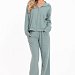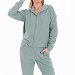 Женский костюм выполнен из плотного и фактурного интерлока с небольшим начесом, который обеспечивает тепло и комфорт. Комплект состоит из практичной толстовки с застёжкой на молнии, длинным спущенным рукавом и уютным воротником-стойкой, а также элегантных свободных брюк с удобными боковыми карманами и поясом на резинке. Этот универсальный ансамбль идеально подходит для прогулок, отдыха дома и создания стильного повседневного образа в прохладную погоду.