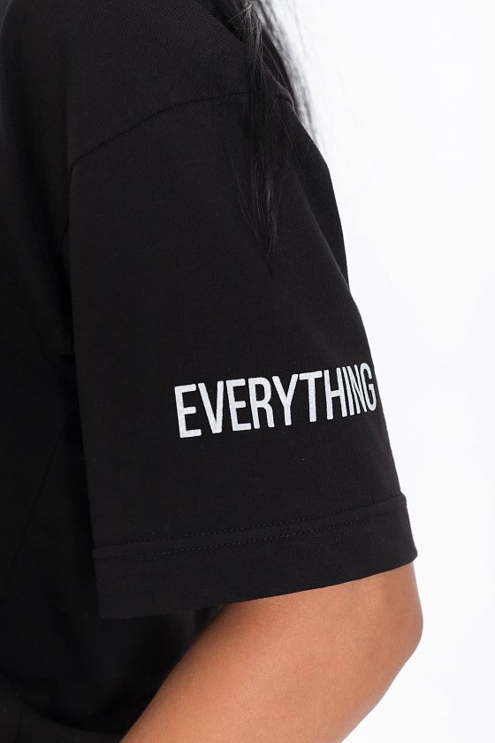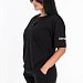 Футболка имеет спущенный короткий рукав, который обеспечивает свободу движений. На рукаве расположен принт контрастного цвета, что придаёт модели оригинальность. Горловина футболки круглая, а по центру есть планка в виде разреза.