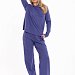 Уютный и стильный домашний костюм, состоит из лонгслива с элегантным V-образным вырезом и комфортных брюк. Мягкая кулирка с деликатным глиттером обеспечивает приятные ощущения на коже и аккуратный блеск. Брюки выполнены с притачным поясом и удобными боковыми карманами, имеют прямой свободный крой, который не стесняет движений. Идеальный выбор для домашнего отдыха и повседневных дел.