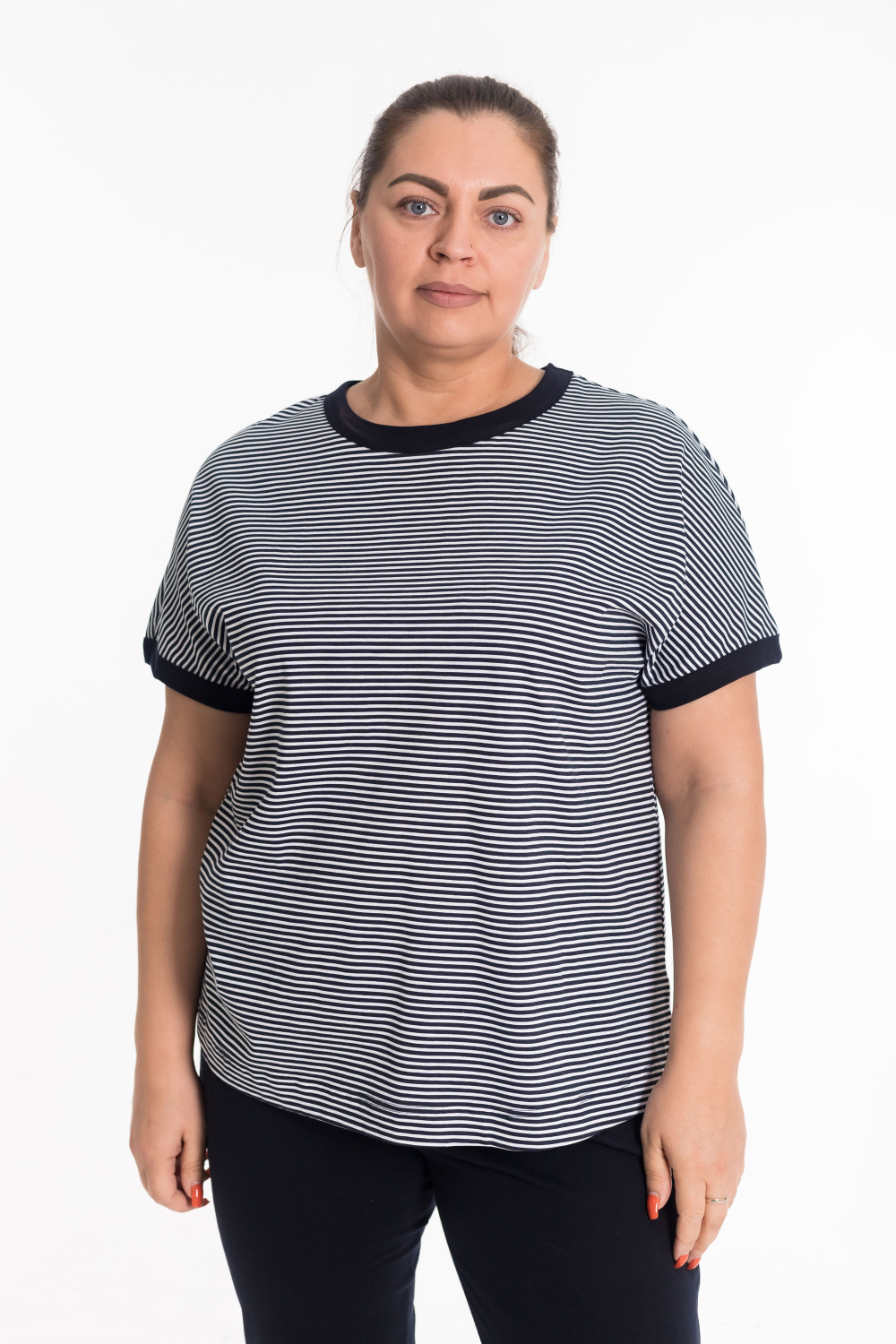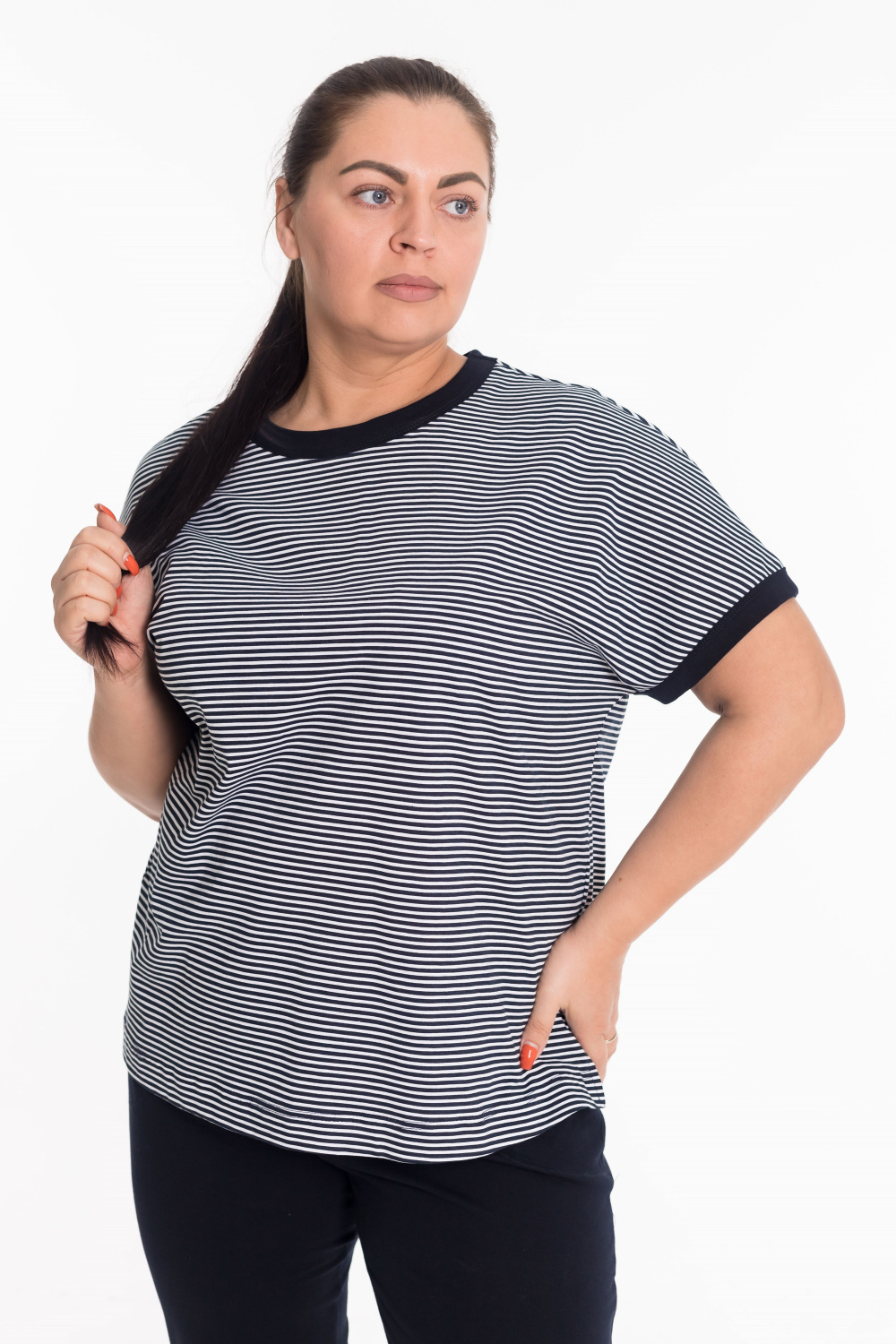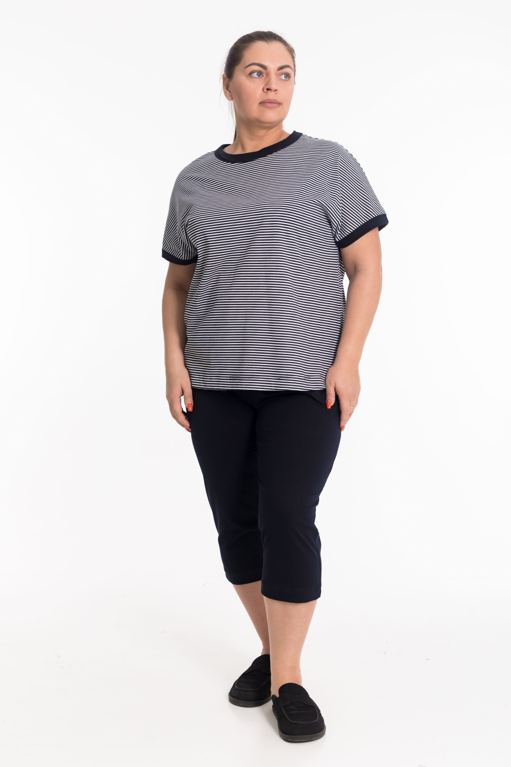 Костюм женский выполнен из мягкого хлопкового полотна, что обеспечивает комфорт и удобство в повседневной носке. Комплект состоит из футболки и капри. Футболка с коротким рукавом имеет аккуратную отделку бейкой по горловине и низу рукавов. Боковые разрезы придают изделию легкость и свободу движений. Капри с поясом на резинке и боковыми карманами практичны и удобны, идеально подходят как для дома, так и для прогулок. Такой костюм сочетает в себе простоту, комфорт и универсальность.
