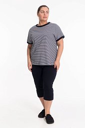 Костюм из кулирки, 100% хлопок. Футболка однотонная, с круглым вырезом горловины, спереди расположен принт. Втачной рукав длиной 3/4. Брюки на резинке сверху и снизу, с боковыми карманами.