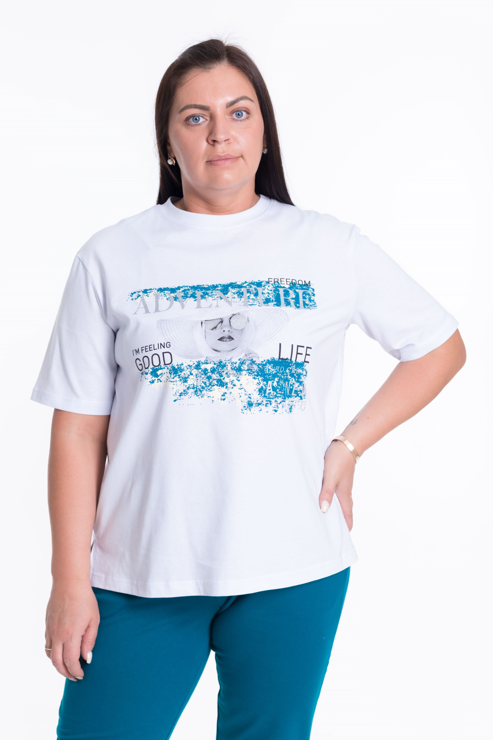 Футболка - х/б полотно, на полочке принт, короткий рукав. по бокам разрезы.