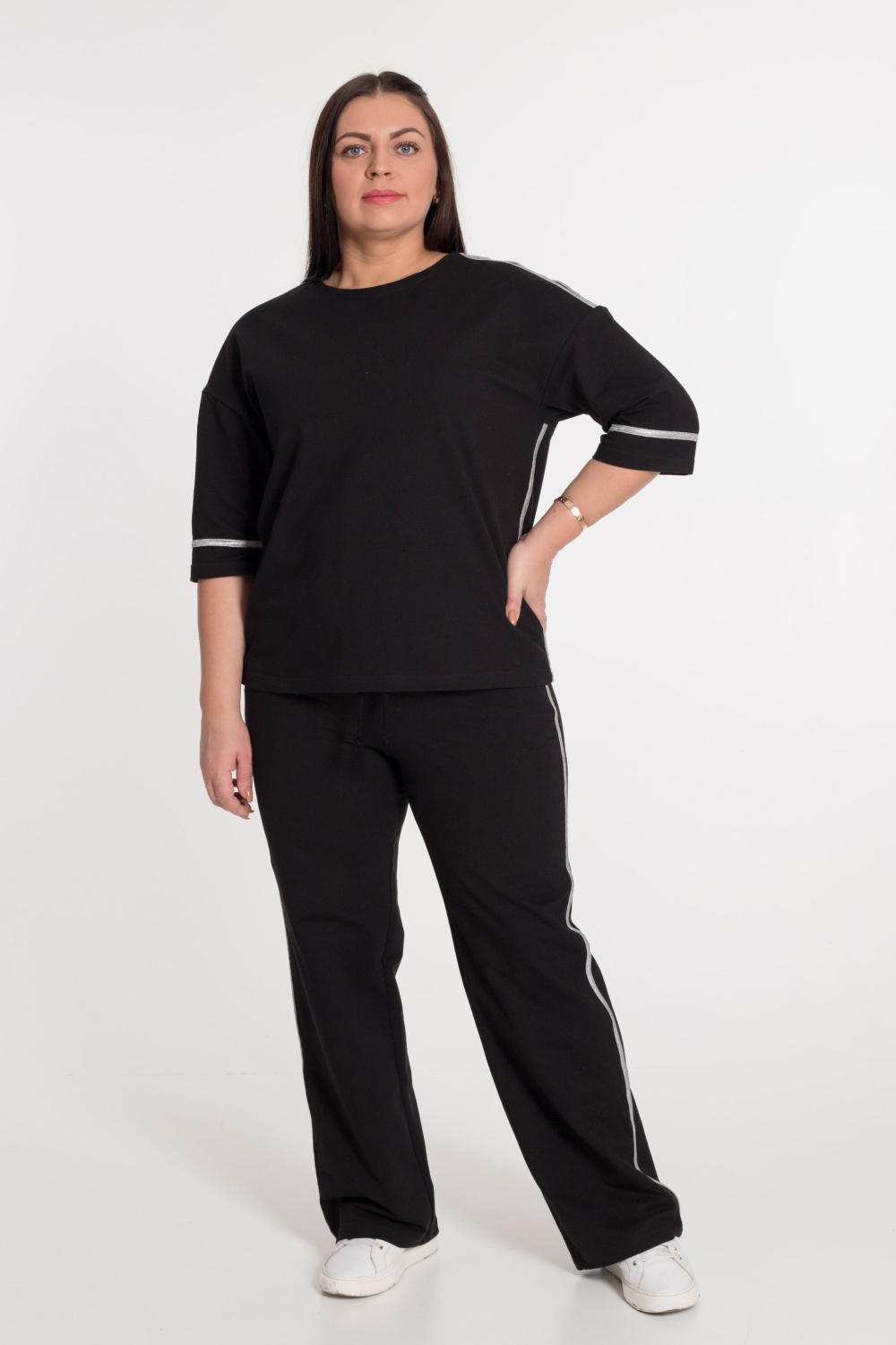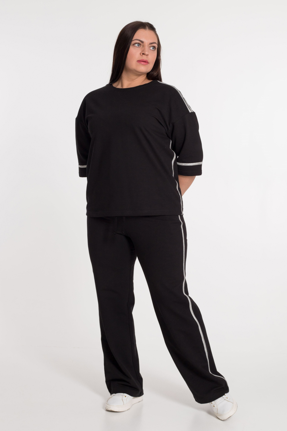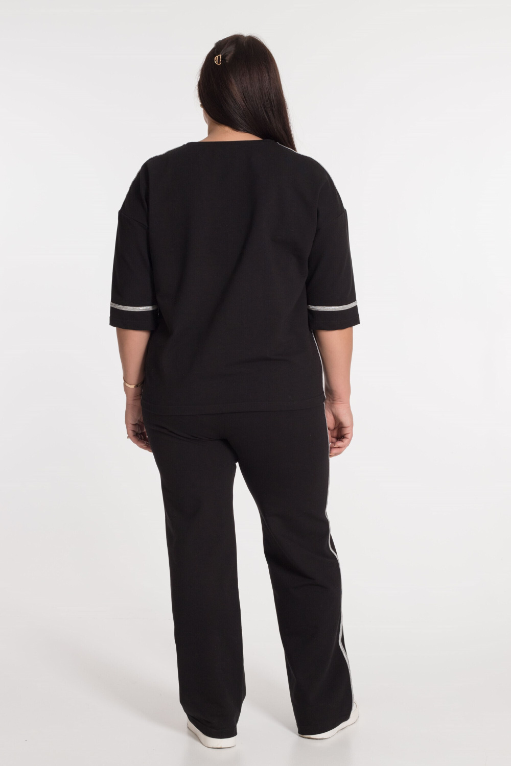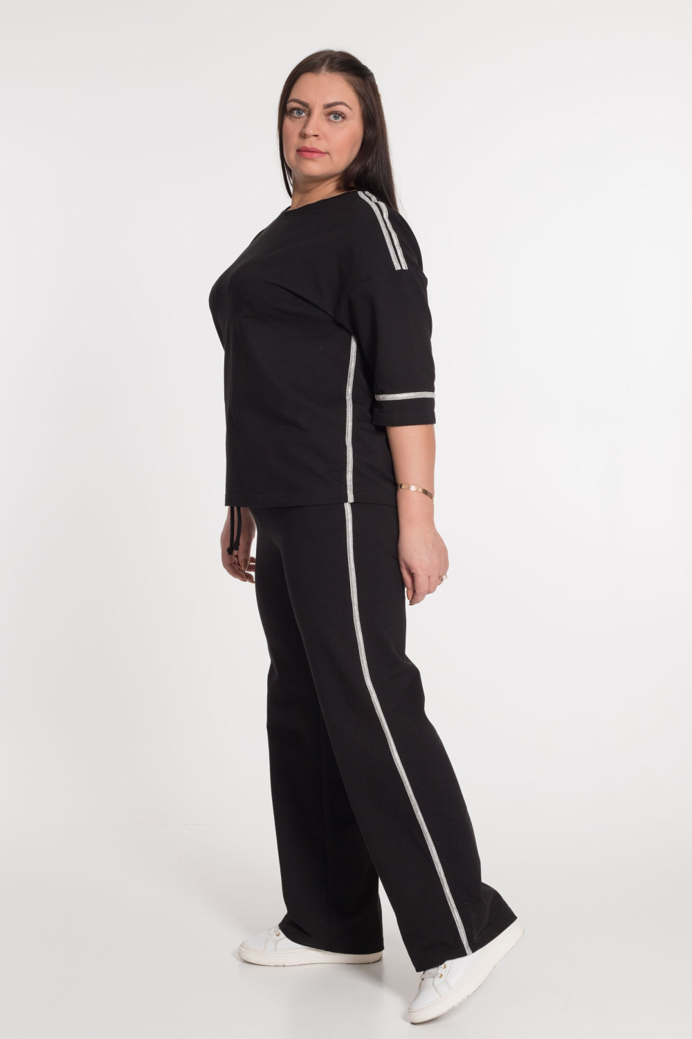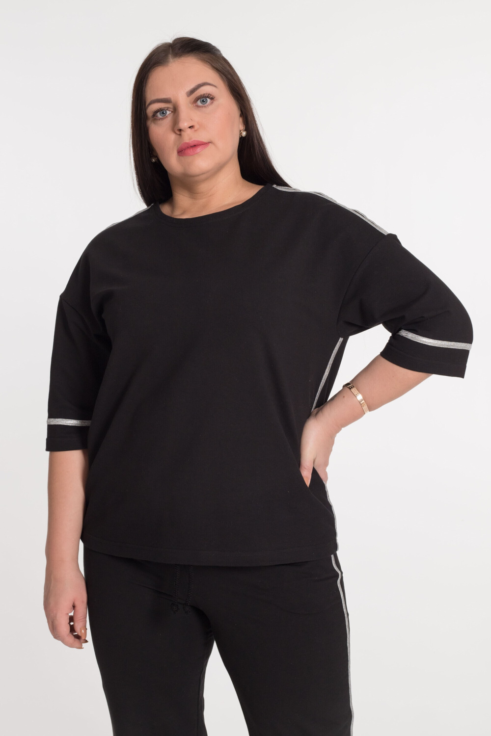 Толстовка - круглый вырез горловины, рукав 3/4, по плечевой части, рукавам и боковым швам толстовки серебряные лампасы
