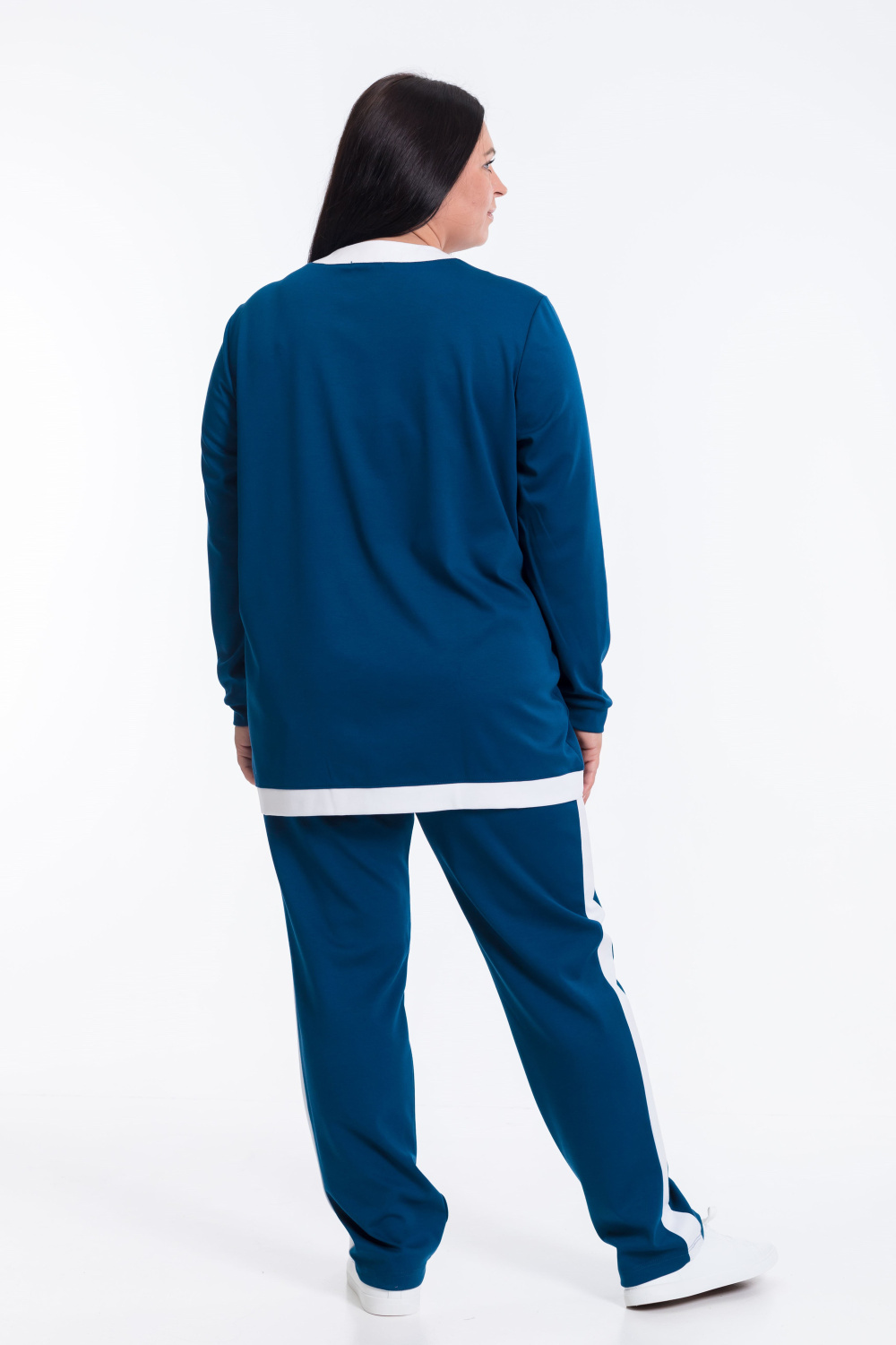 Брюки прямые, зауженные к низу, что обеспечивает свободу движений и комфорт при ходьбе. Боковые карманы и лампасы отделочного цвета добавляют функциональность и оригинальность. Резинка в поясе обеспечивает удобную посадку.