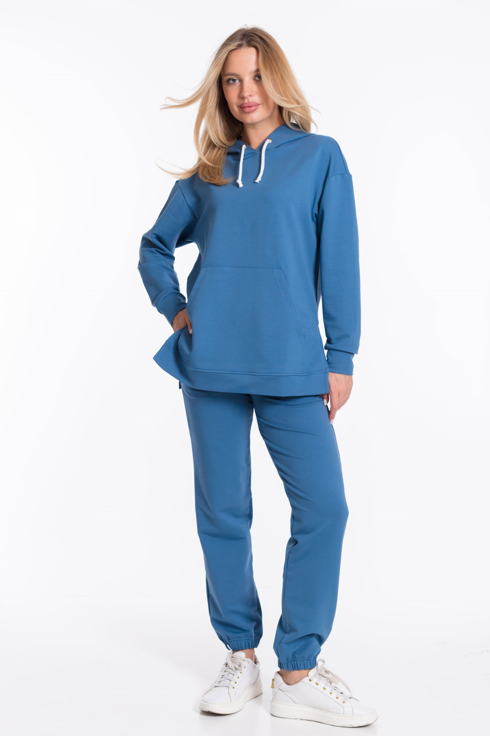 Женский костюм — отличный выбор для повседневного гардероба. Он состоит из толстовки и брюк, выполненных из однотонного футера петли с лайкрой.