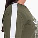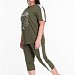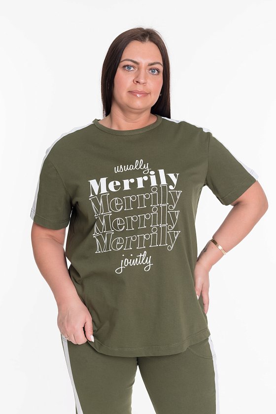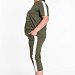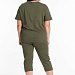 По плечам и рукаву футболки, по бокам капри лампасы контрастного цвета.