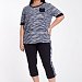 Женский костюм — отличный выбор для повседневной носки. Он состоит из футболки и капри, выполненных из хлопкового полотна.