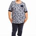 Костюм выполнен из кулирки, 100% хлопок, состоит из футболки и капри. Футболка из полотна с набивным рисунком, с круглым вырезом горловины и нагрудным карманом спереди. Капри однотонные, со вставкой из отделочного полотна и карманами по бокам.