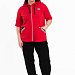 Женский костюм выполнен из хлопкового футера. Толстовка с короткими рукавами, прорезными карманами и застёжкой на молнию. Ширина капюшона регулируется при помощи шнура. Брюки с карманами по бокам, пояс и низ брюк на резине.