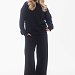 Женский костюм выполнен из футера "воздушки" в черном цвете. Толстовка с капюшоном на шнуре, спущенным рукавом и удобным карманом-кенгуру создаёт уют и комфорт. Брюки прямого силуэта, расширяющиеся к низу, выполнены с боковыми карманами и притачным поясом на резине. По центру переда проходит декоративная отстрочка, придающая образу стильный акцент. Идеальный вариант для повседневного гардероба и комфортного отдыха.