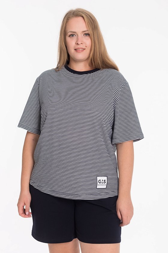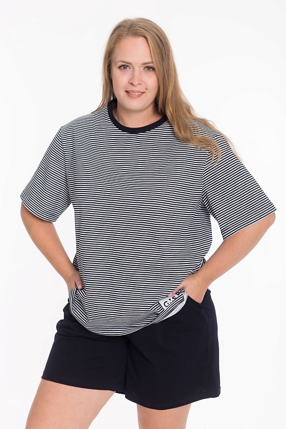 Женский костюм, состоящий из футболки и шорт, — отличный выбор для дома, отдыха и активного досуга. Футболка с коротким рукавом, горловина аккуратно обработана бейкой из отделочного полотна, спереди украшена стильной нашивкой. Шорты имеют комфортный пояс на резинке и удобные боковые карманы. Лёгкий и практичный комплект обеспечивает свободу движений и комфорт в течение всего дня.