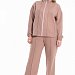 Костюм выполнен из мягкого футера и состоит из толстовки на молнии и брюк с боковыми карманами. Толстовка со спущенной линией плеча, украшена декоративными защипами на воротнике, полочках и спинке, что придаёт модели оригинальность и стиль. Брюки прямого кроя со стрелками, аккуратно простроченными для создания элегантного силуэта. Удобный и практичный костюм идеально подойдёт для повседневной носки и отдыха.