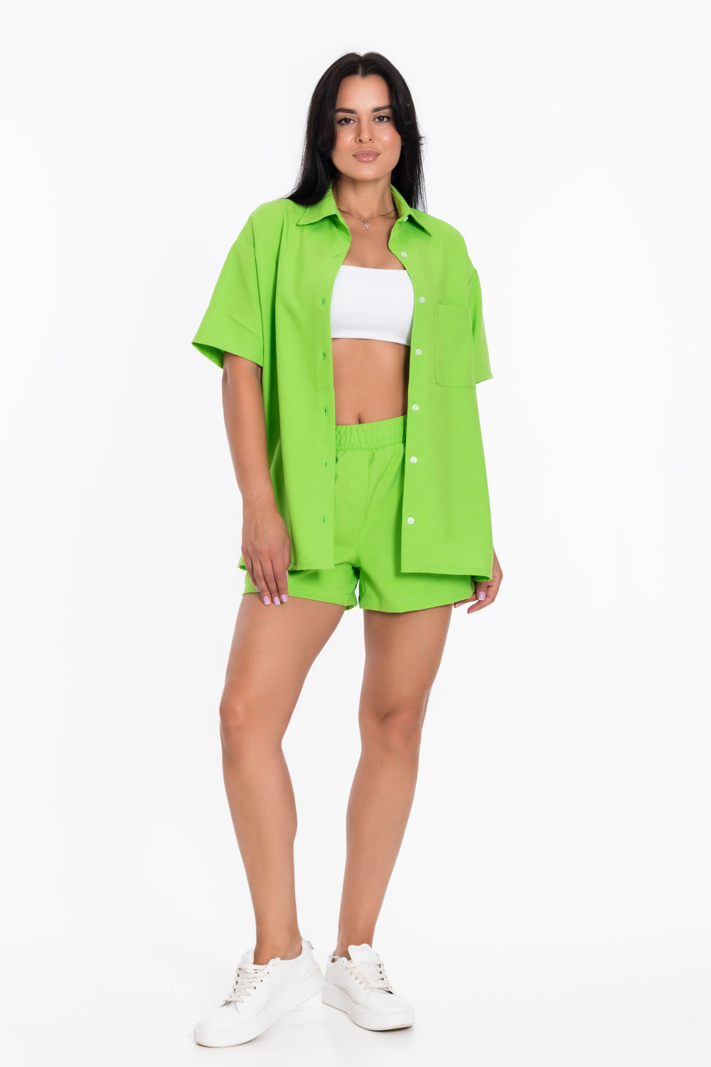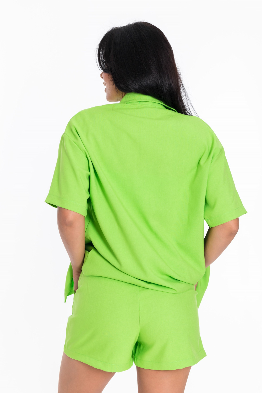 Однотонный салатовый цвет костюма добавит яркости в ваш образ.