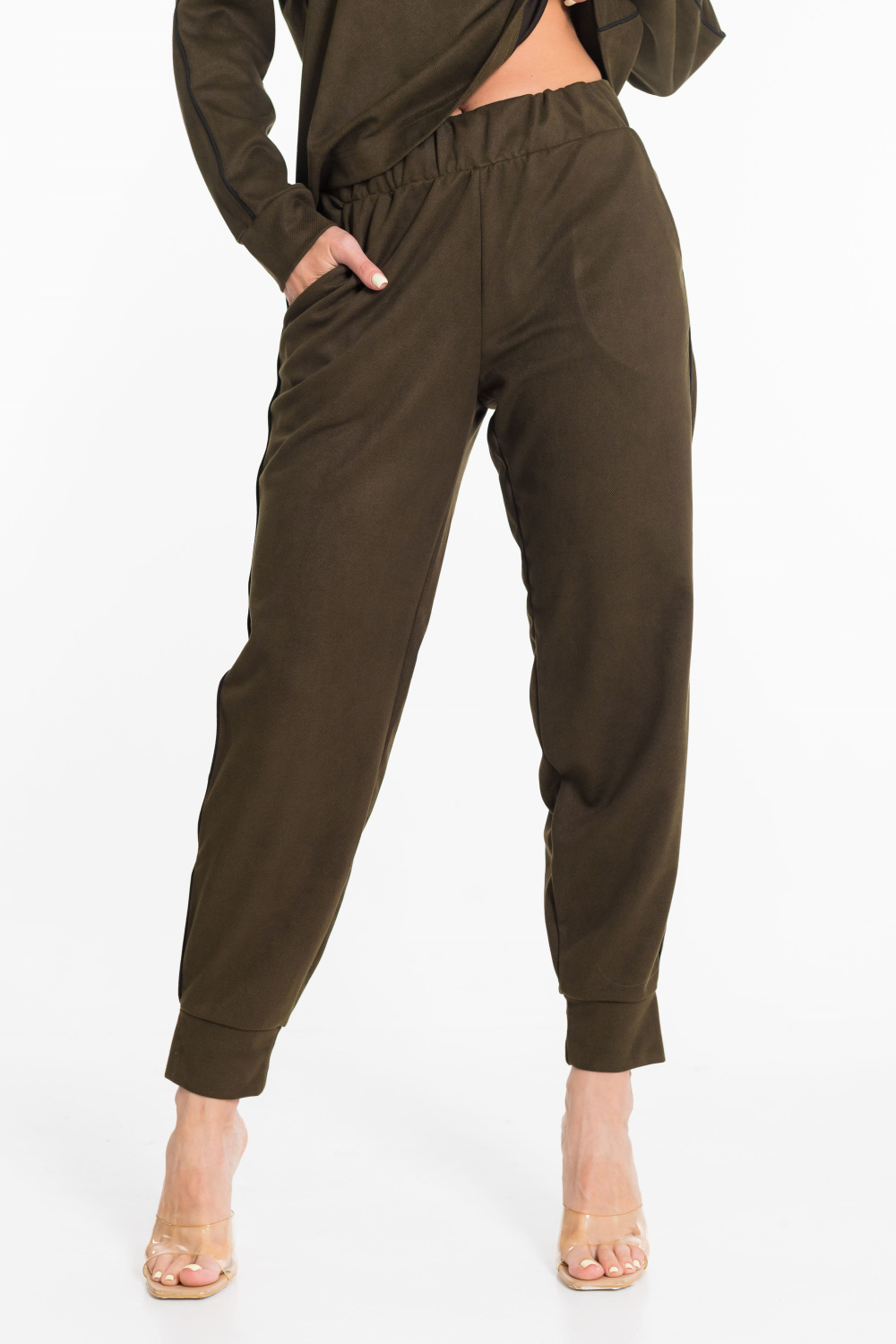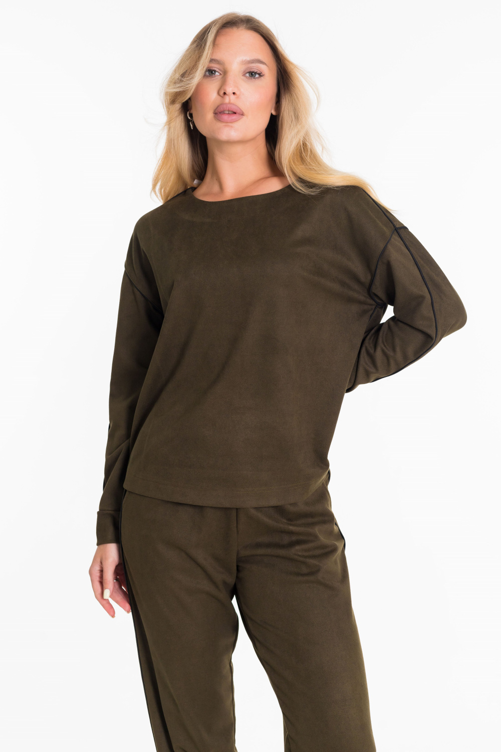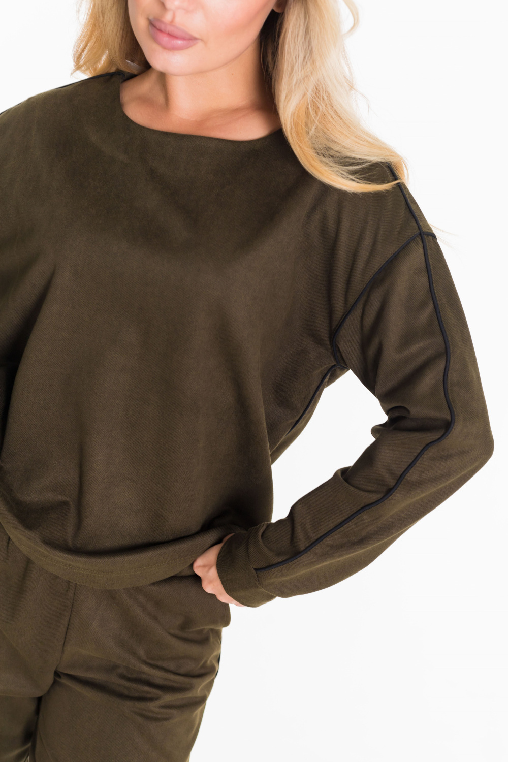 Женский костюм из материала «замша диагональ» состоит из джемпера и брюк, гармонично сочетающихся между собой. Джемпер свободного кроя с длинным рукавом и округлым вырезом горловины обеспечивает удобство и мягко подчеркивает фигуру. Брюки на резинке комфортно сидят по талии, имеют свободный силуэт и универсальную длину, что делает их практичными для повседневной носки. Материал «замша диагональ» приятный на ощупь, мягкий, создаёт ощущение уюта и добавляет образу элегантности. Костюм легко вписывается как в повседневный гардероб, так и в более нарядные комплекты.