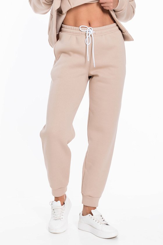 У брюк широкий пояс на резинке и шнуре, что обеспечивает надёжную фиксацию. Штанины с манжетами, карманы расположены в боковых швах.