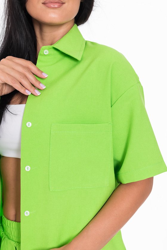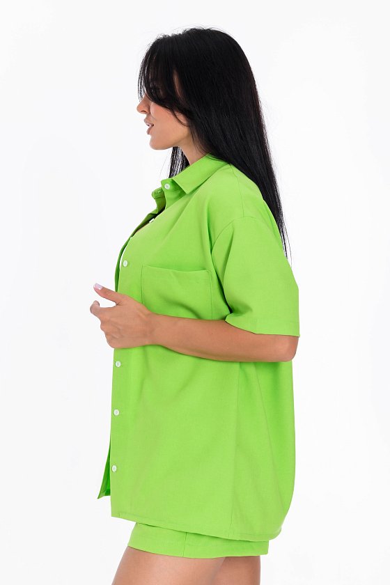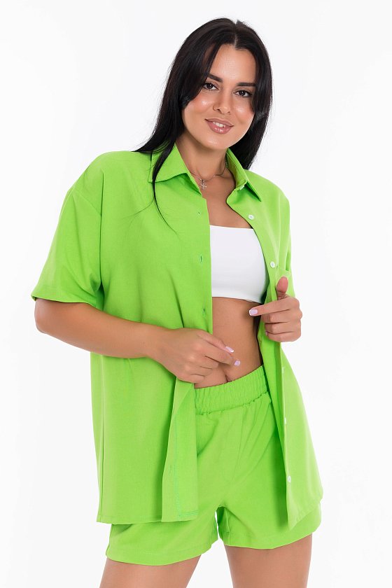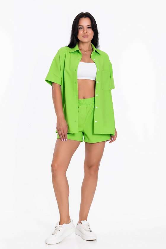 Однотонный салатовый цвет костюма добавит яркости в ваш образ. -