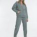 Женский костюм из футера трёхнитки — стильное и практичное решение для повседневного гардероба. В комплект входит кардиган со спущенным рукавом и застёжкой на пуговицы, дополненный накладными карманами, а также брюки на резинке с удобной посадкой. Низ брюк оформлен декоративными защипами с пуговицей. Универсальный фасон позволяет сочетать костюм для прогулок и повседневной носки, обеспечивая комфортный и современный стиль.